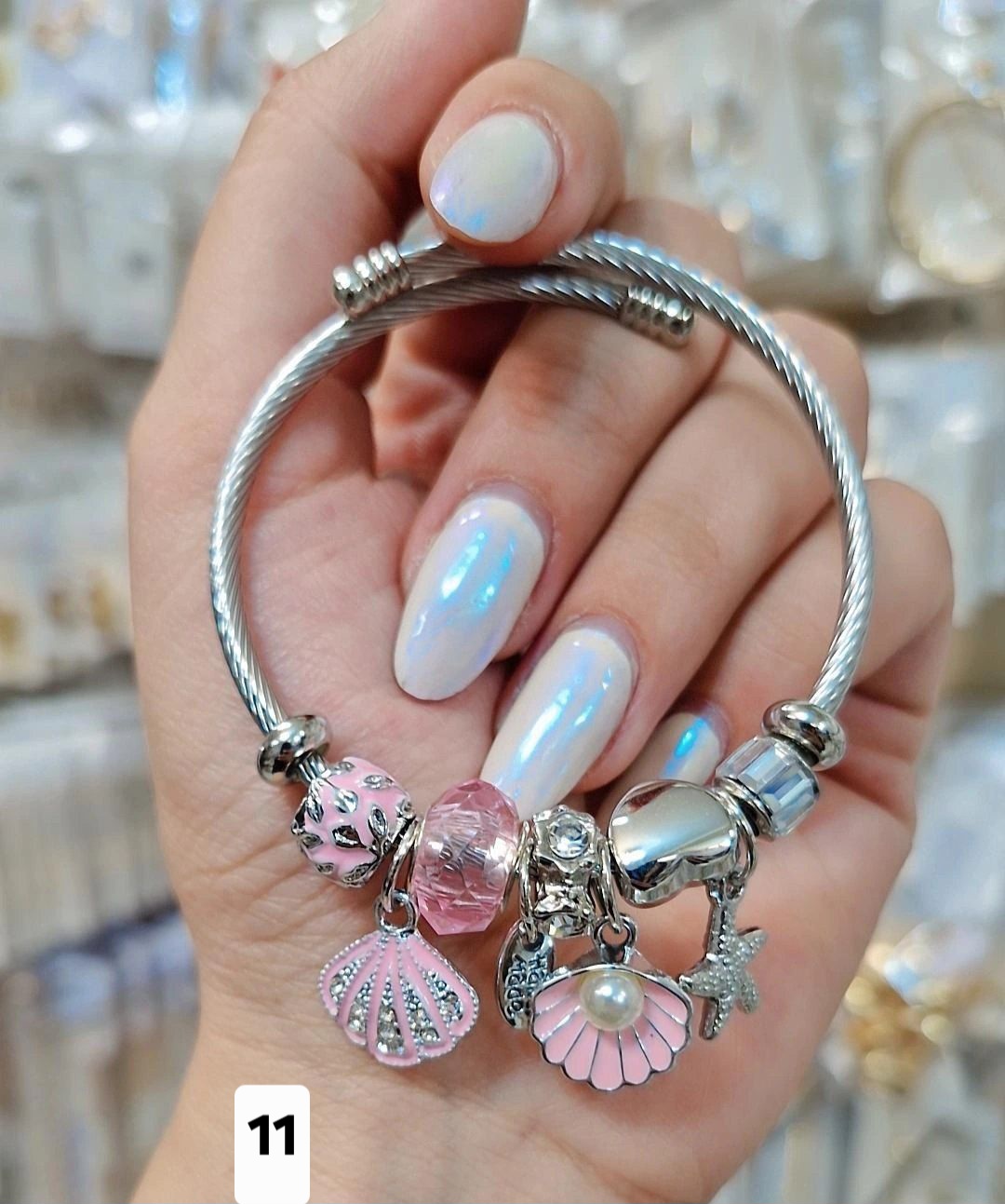 بنگل پاندورا صورتی آویزدار استیل رنگ ثابت