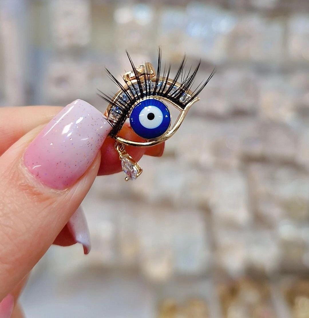 پلاک چشم نظر مژه دار استیل طرح طلا رنگ ثابت