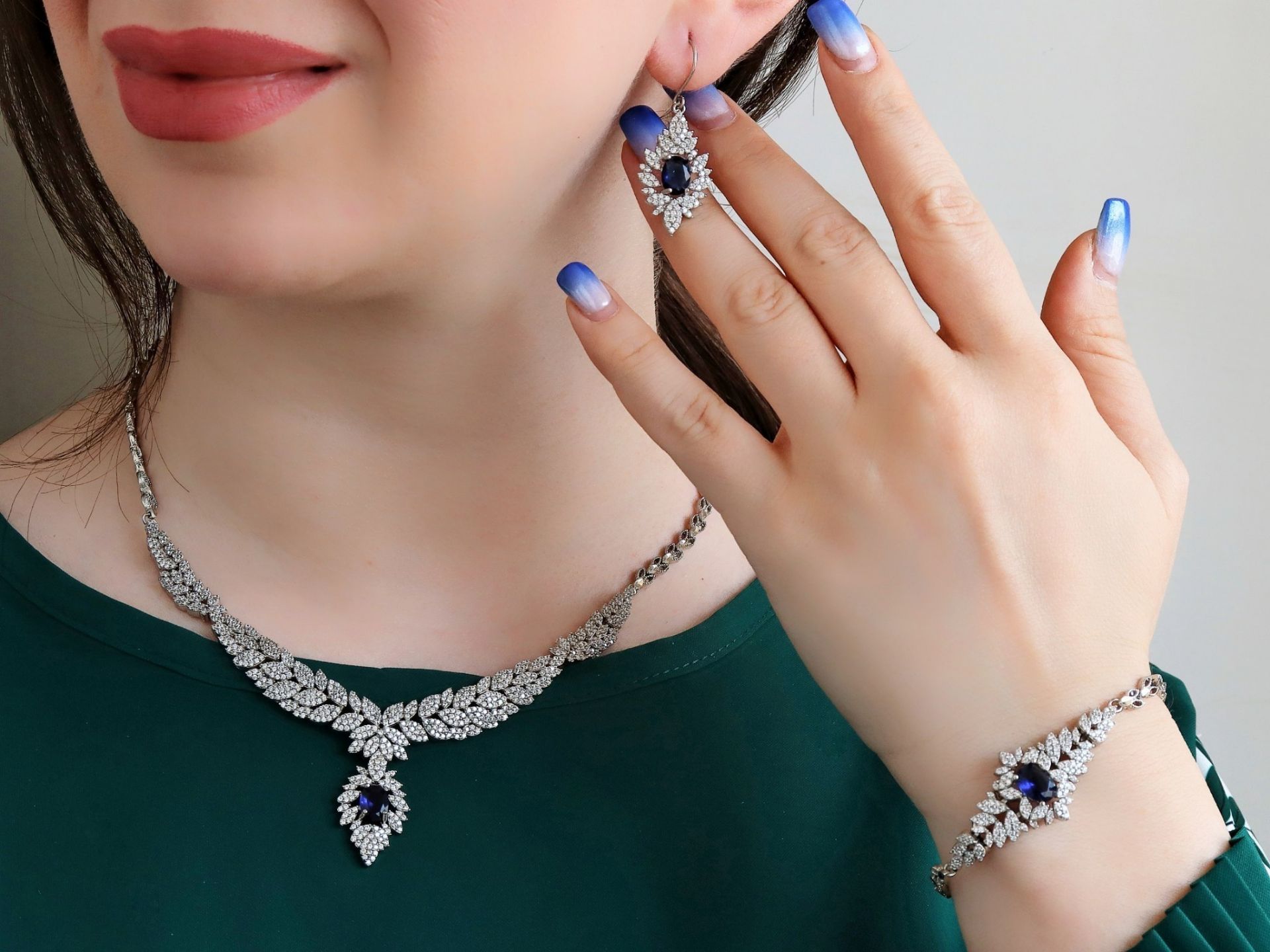 سرویس جواهری مجلسی سیلور فول نگین ،وارداتی باکیفیت آبکاری نقره