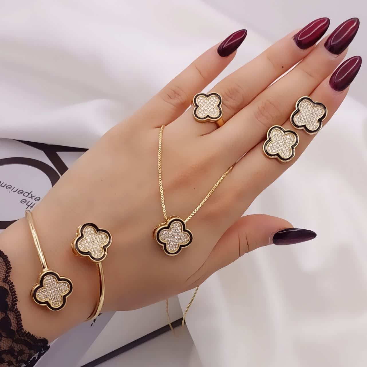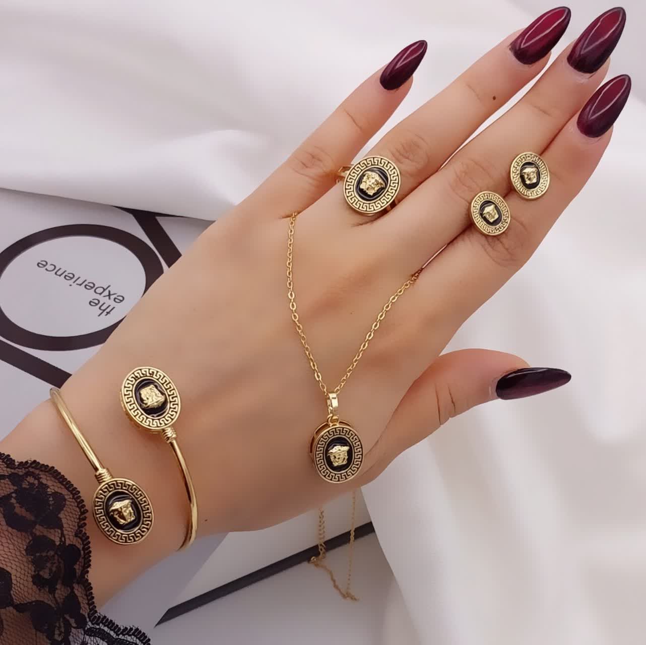 سرویس ورساچه کارتیه جواهری قفل ملوانی کاملا مشابه طلا.رنگ ثابت وارداتی جنس کوپرآبکاری طلاapg