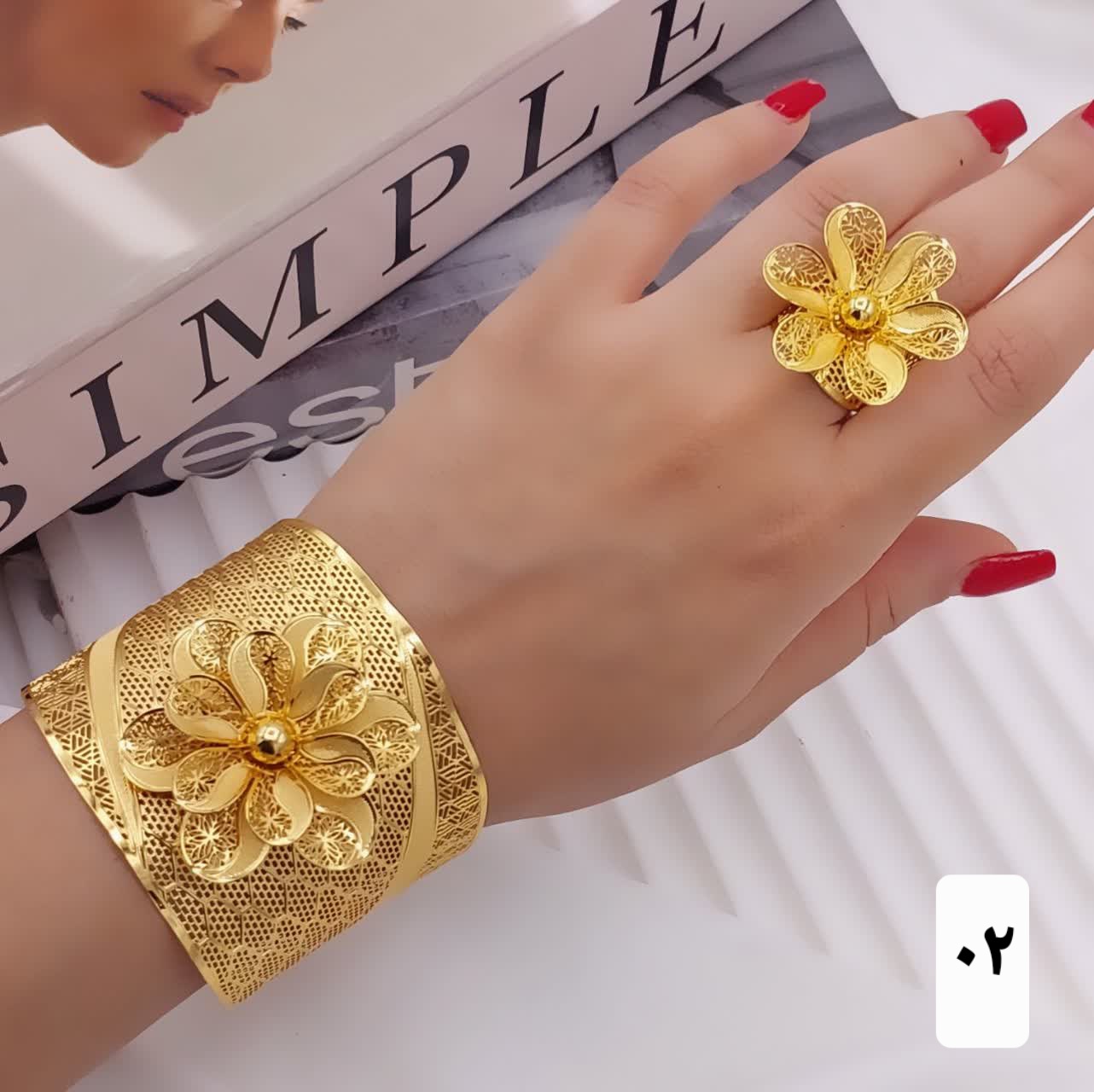 ست دستبندوانگشتر بحرینی مجلسی شیک طرح جدید مشابه طلا باکیفیت عالی