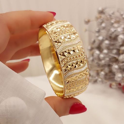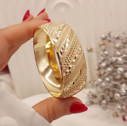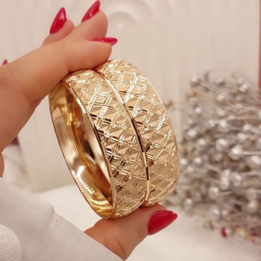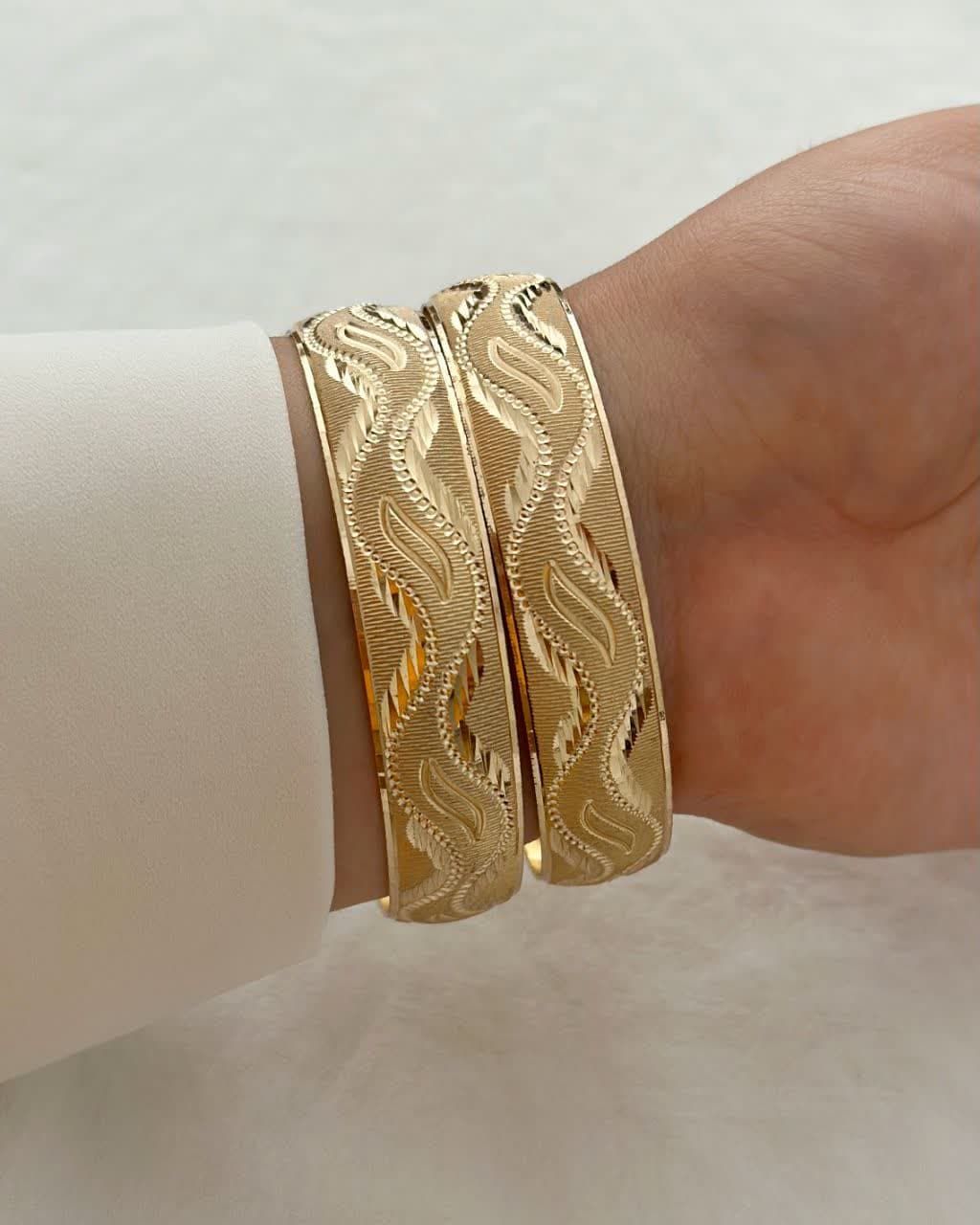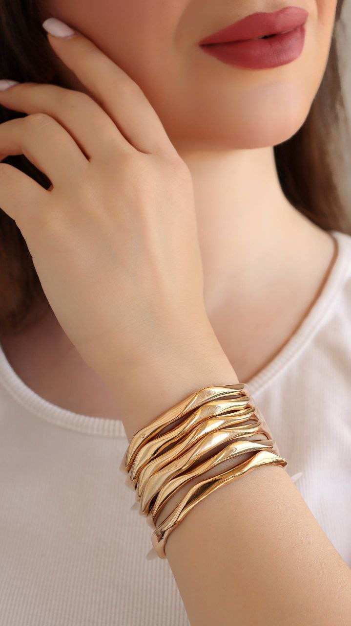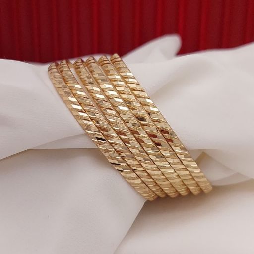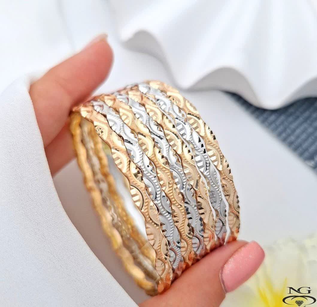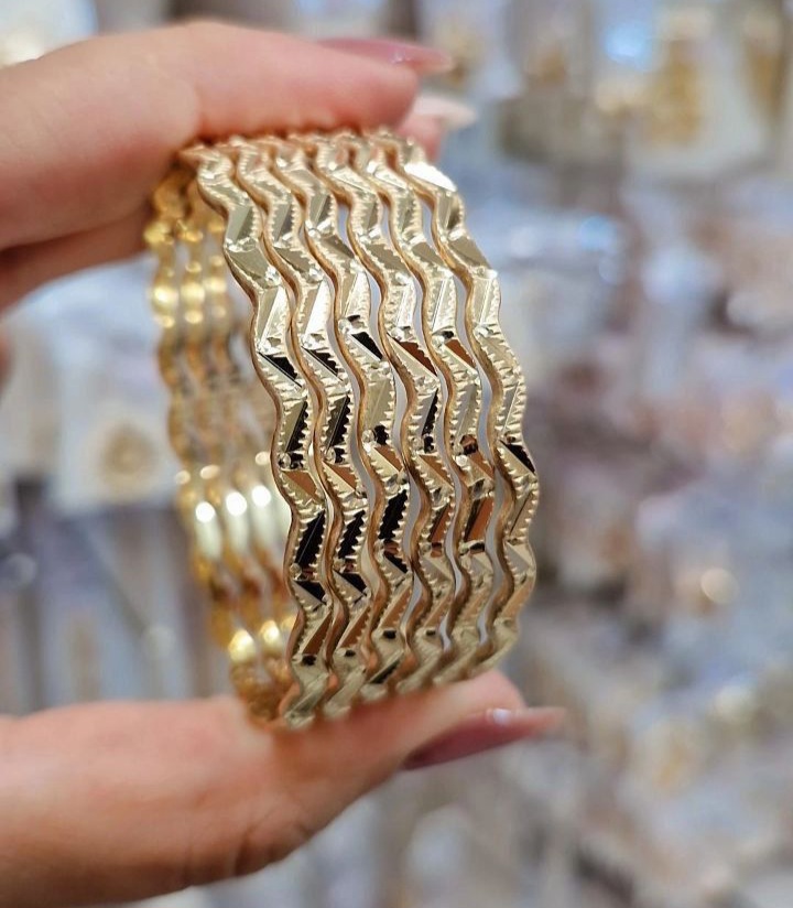 پک۶ تایی النگوطلاروس اصل زنانه رنگ ثابت طرح زیگزاگ(موجی)