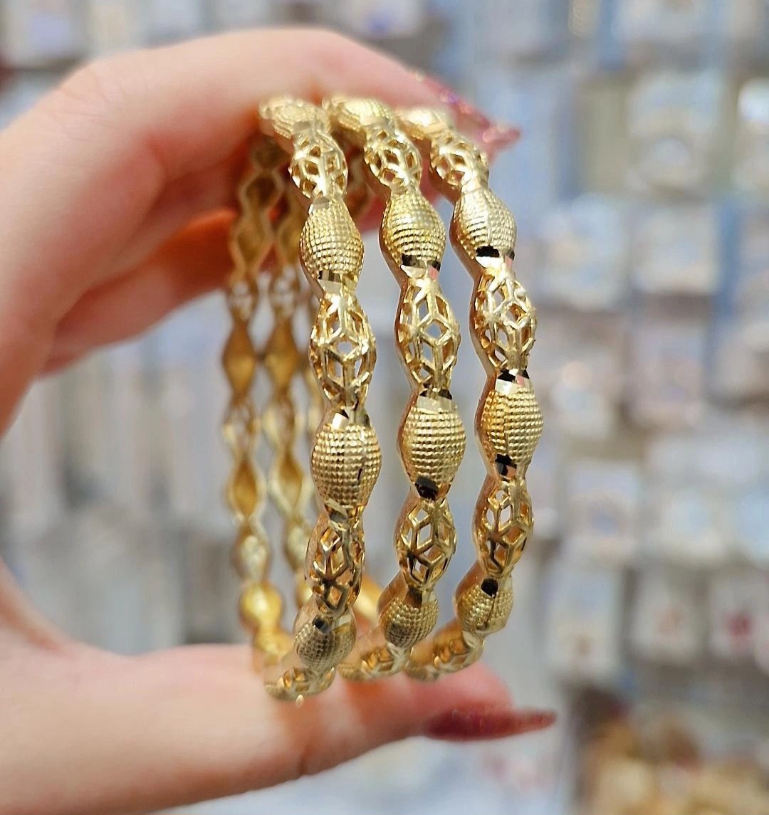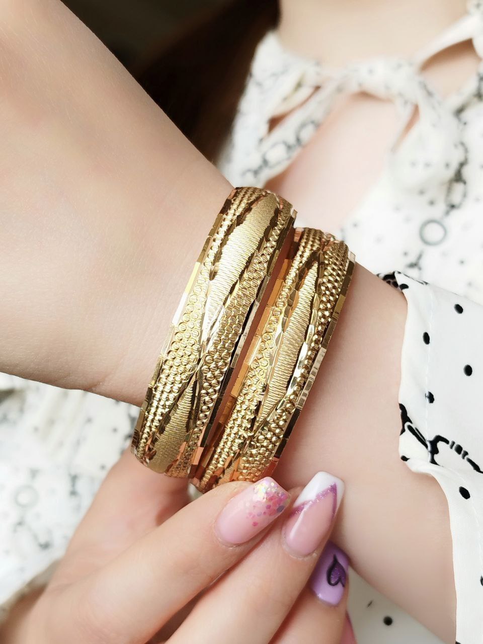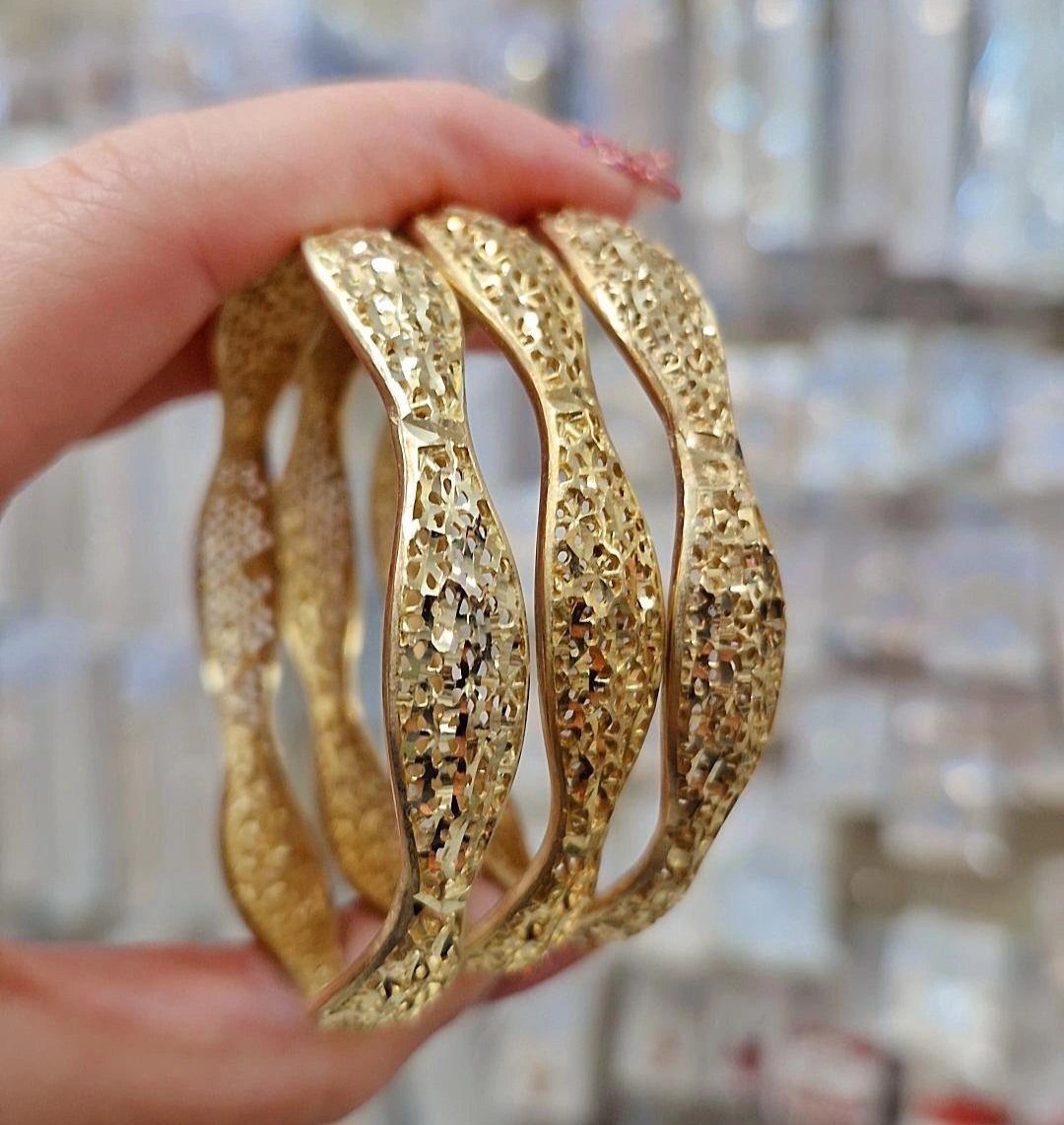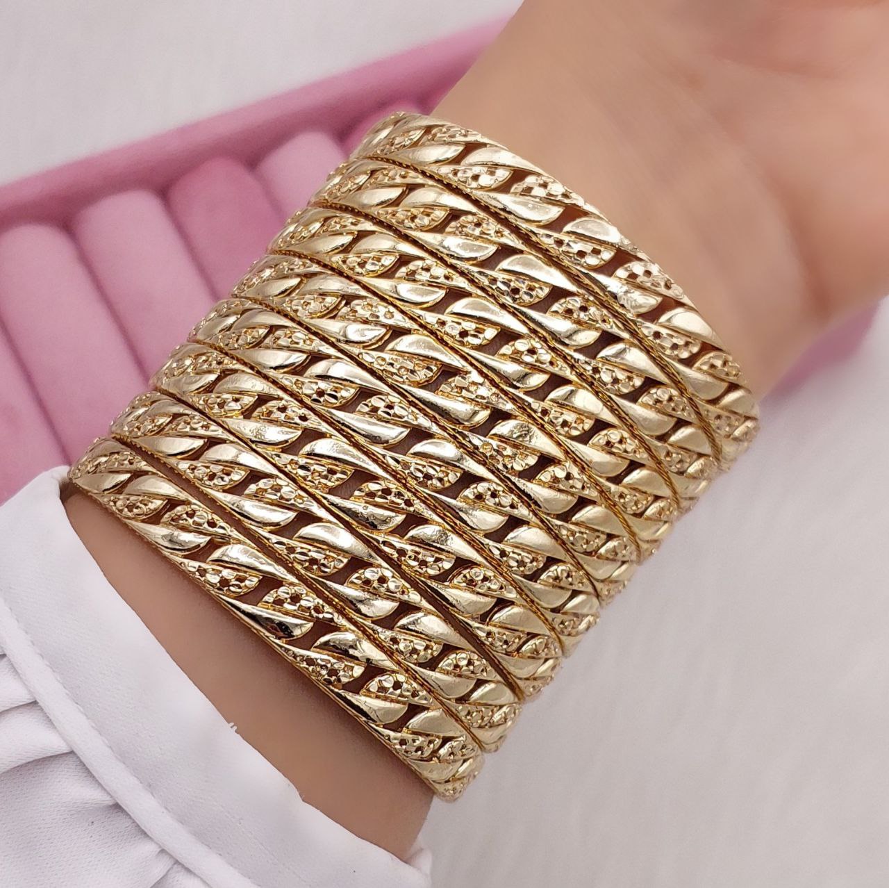 پک۶ تایی النگوطلاروس اصل زنانه رنگ ثابت طرح زیگزاگ(موجی)