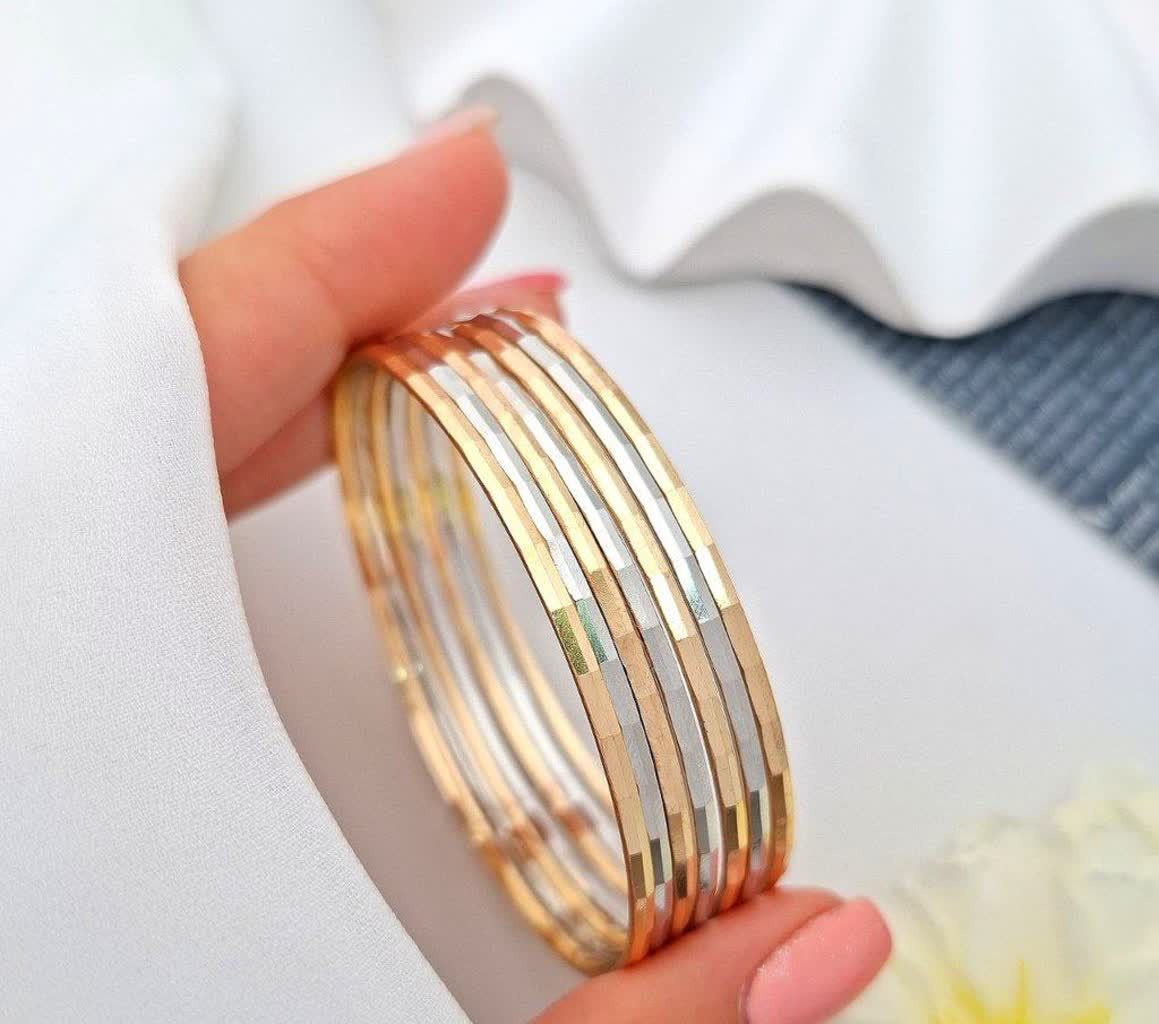 پک ۷عددی النگوطلاروس اصل.ترکیب طلایی و نقره ای ۳میل