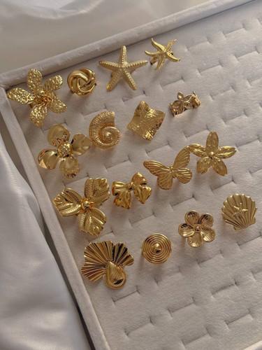 حلقه وپشت حلقه طلایی جدیدکپی طلا ژوپینگ رنگ ثابت آبکاری طلا۱۸