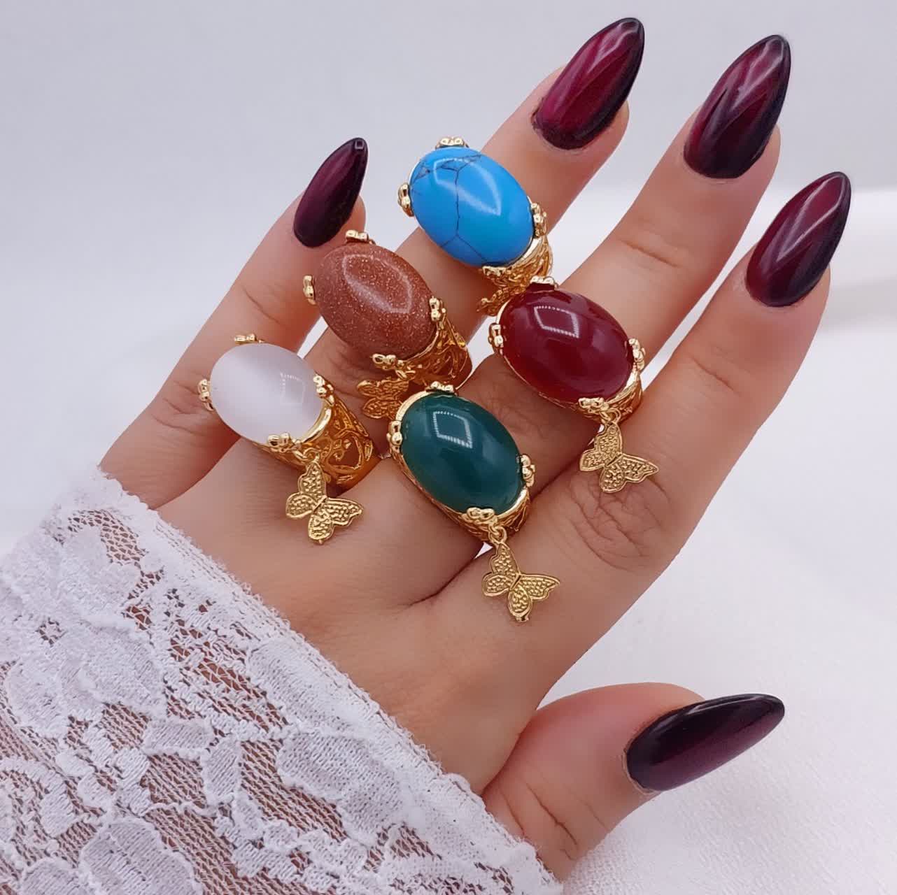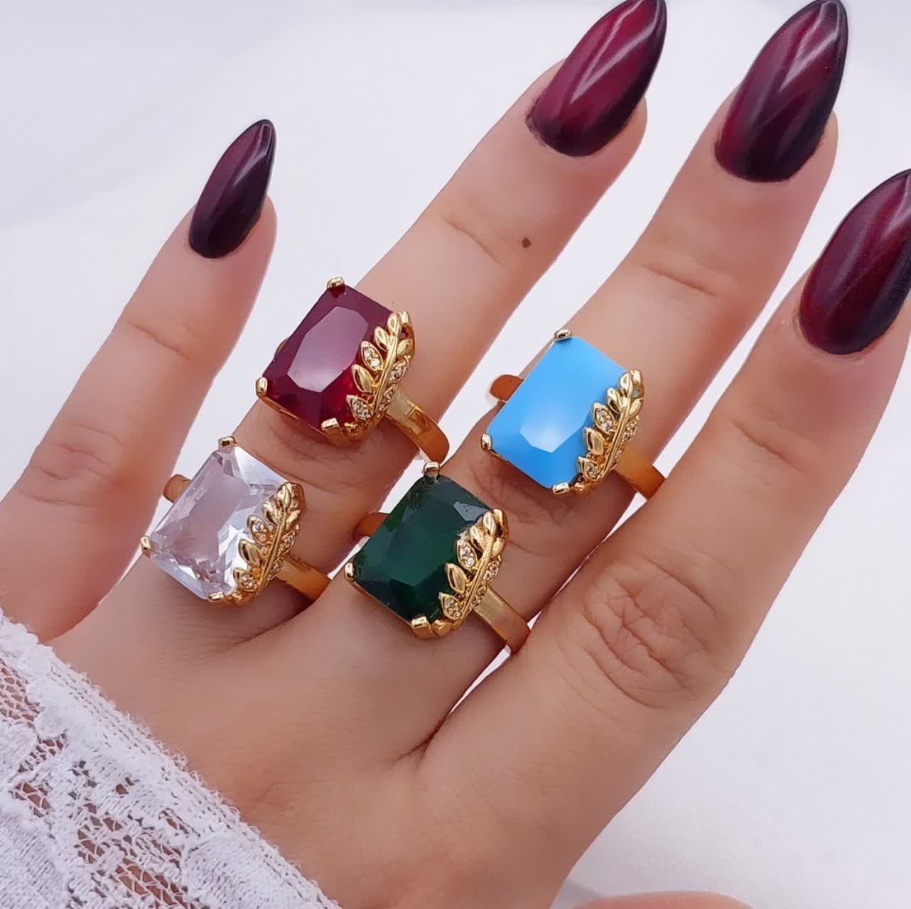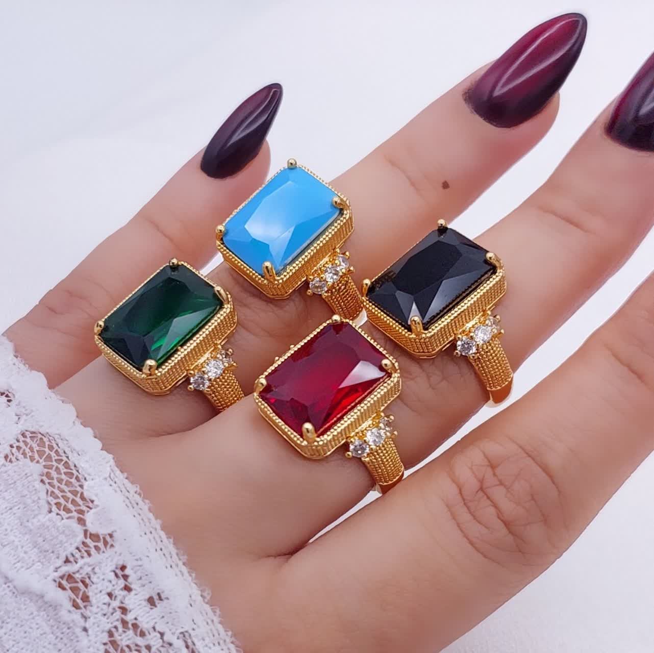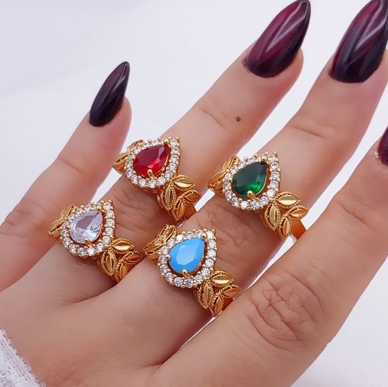 انگشتر سنگی زنانه طرح جدیدمشابه طلا در ۵ رنگ،وارداتی آبکاری قوی طلا