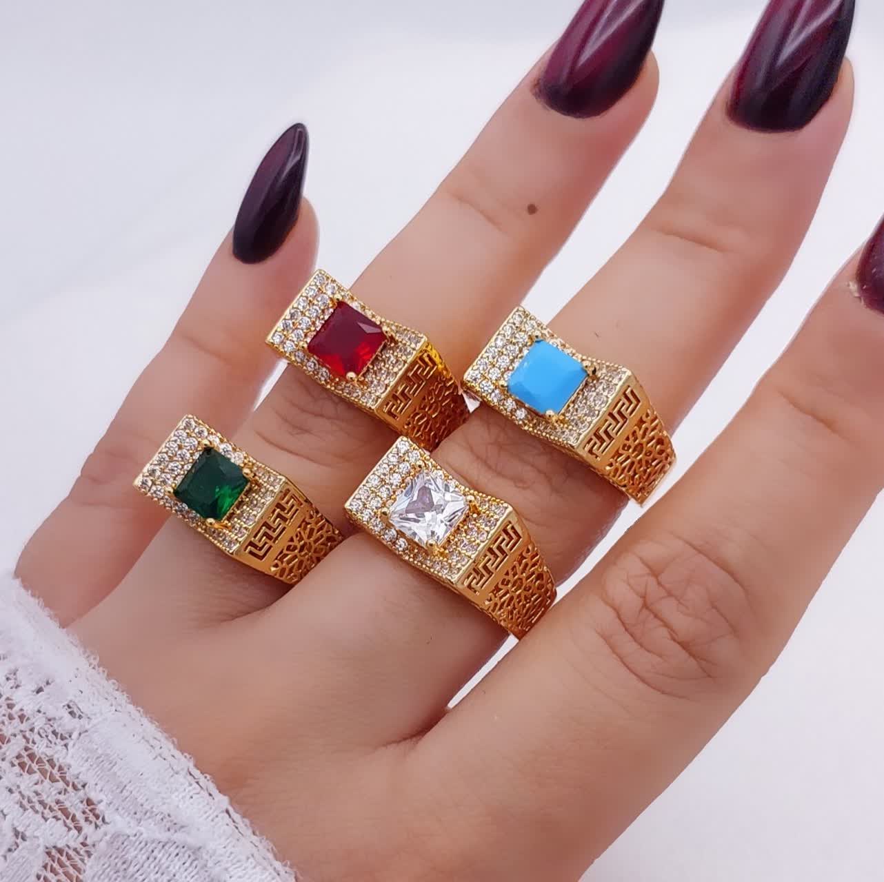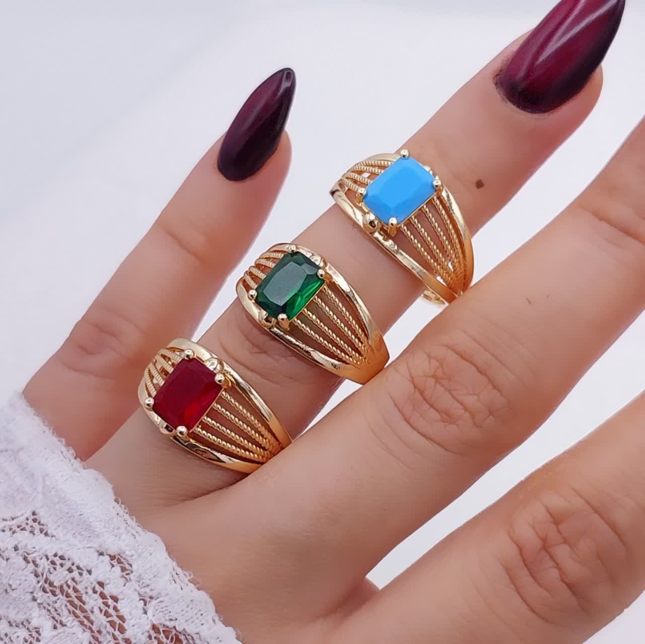انگشتر حلقه رینگی نگین رنگی کاملا مشابه طلا رنگ ثابت برندمعتبرژوپینگ