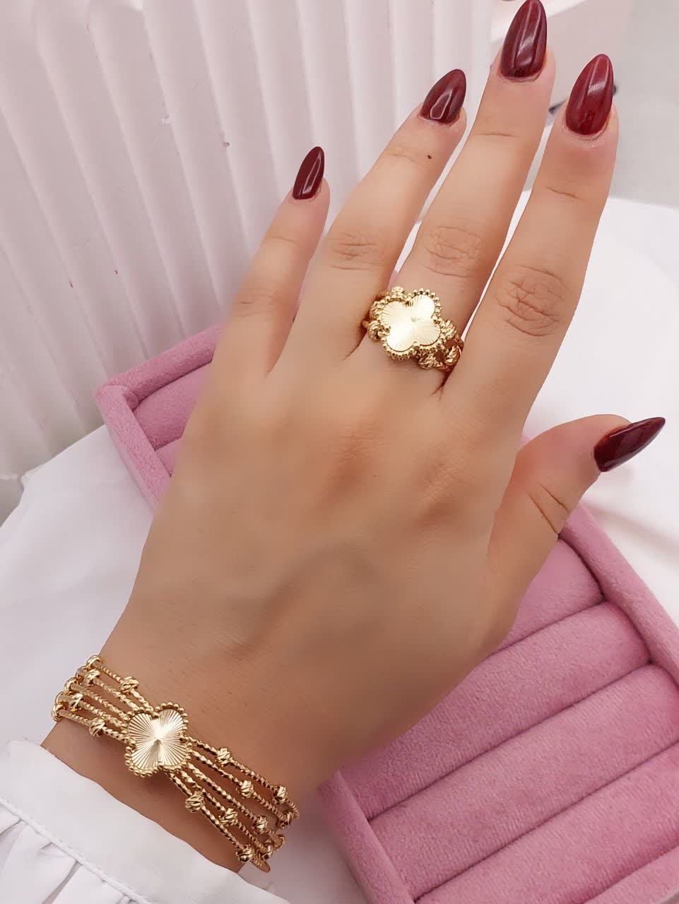 ست استخوانی بانی لوکس طرح جواهری،دستبندانگشتر استخوانی کاملامشابه طلا،رنگ ثابت وارداتی