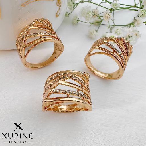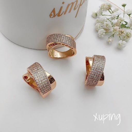 انگشترحلقه کارتیرجواهری کاملاطرح طلا ژوپینگ رنگ ثابت آبکاری طلا۱۸