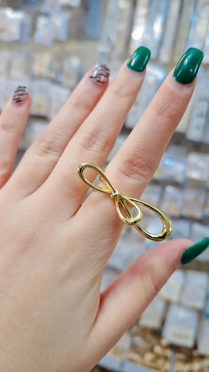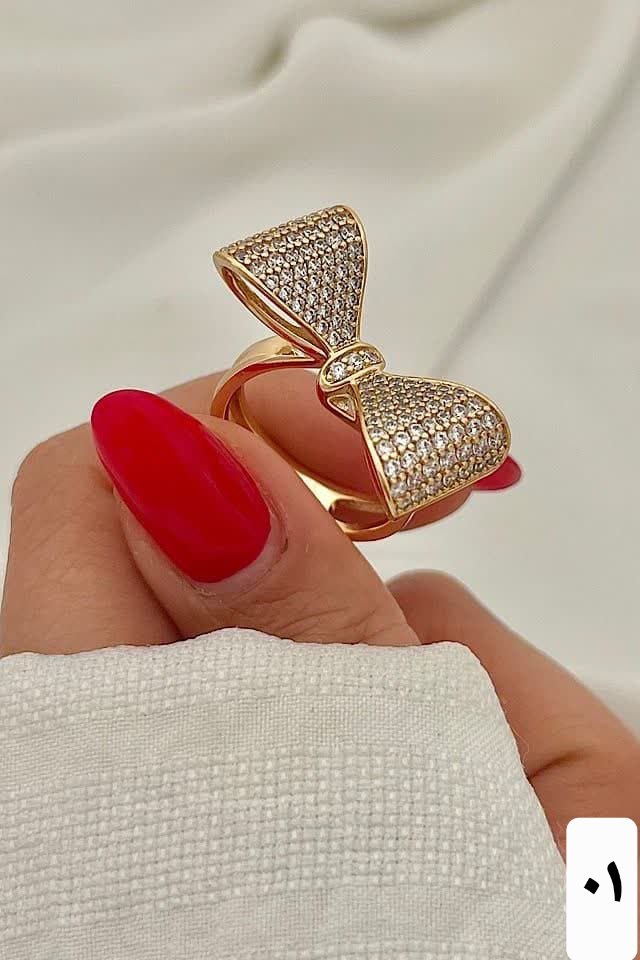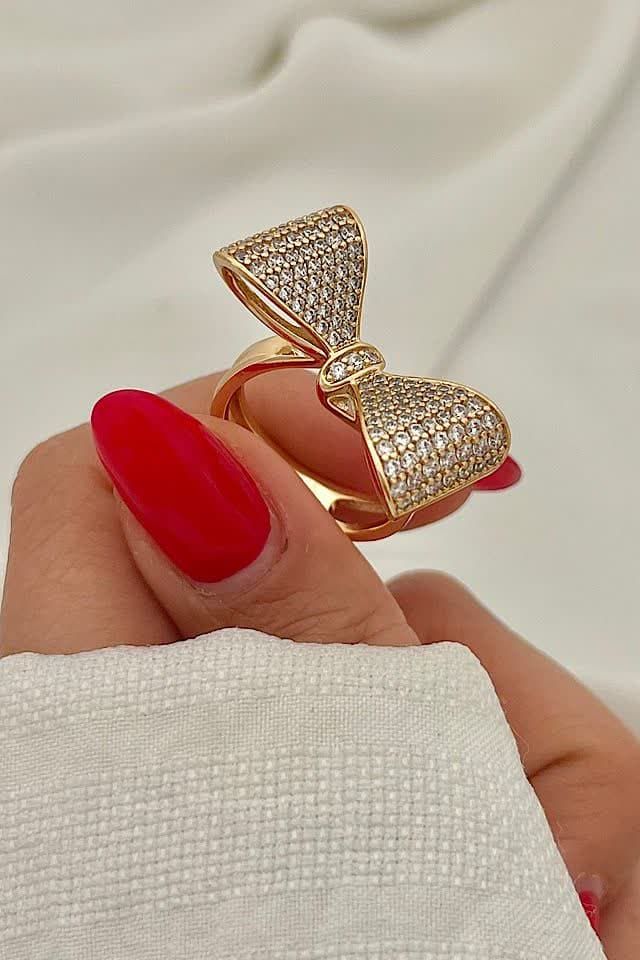 انگشتر پاپیون جواهری طلایی برندمعتبرژوپینگ کاملاطرح طلا،رنگ ثابت آبکاری طلا۱۸