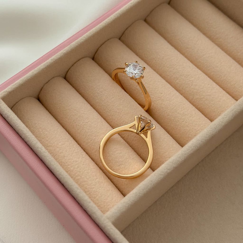 انگشتر جواهری تیفانی کاملا مشابه طلا آبکاری طلا ۱۸عیار برندمعتبرژوپینگ