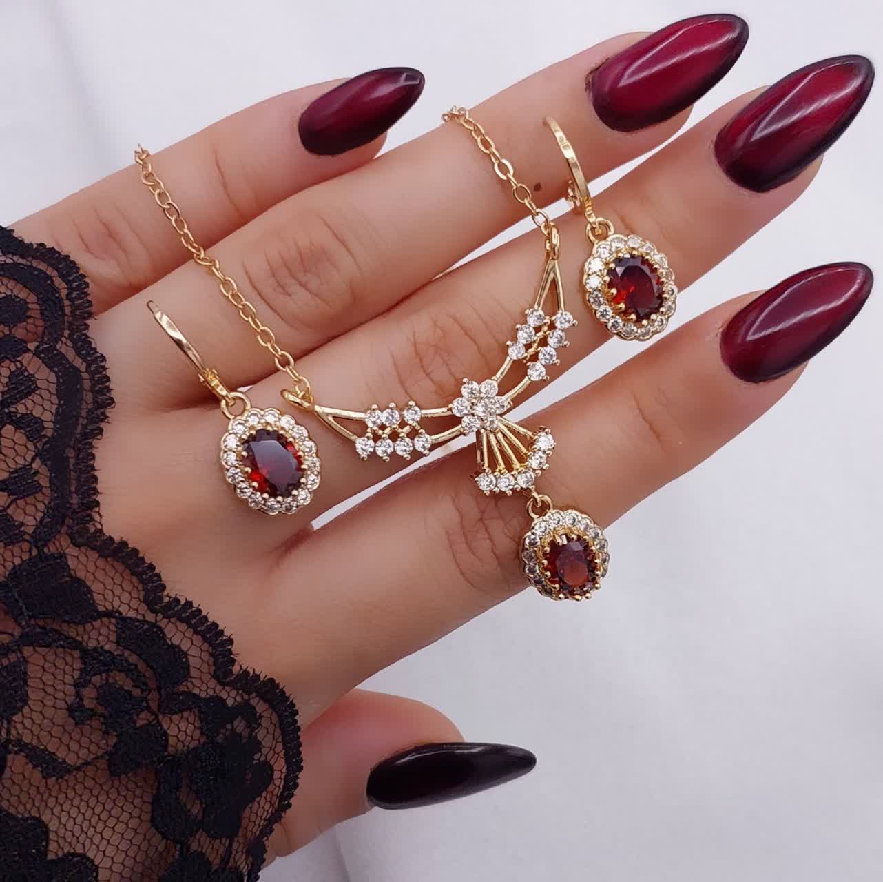 ناموجودنیمست جواهری مینیمال طرح جدیددخترانه،کپی طلا،نگین قرمز
