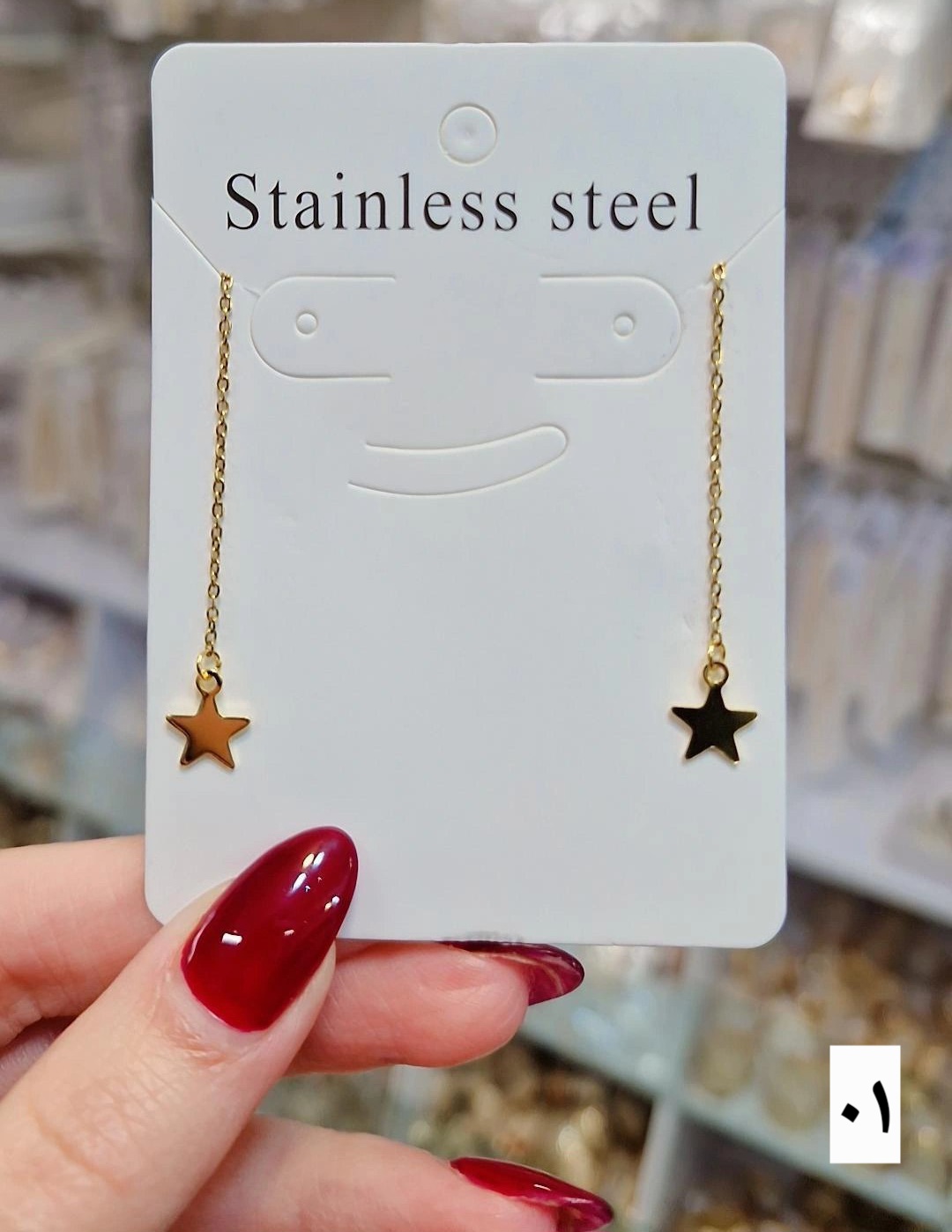 گوشواره بخیه ای مینیمال طرح طلا،طرح ماه وستاره رنگ ثابت وضدحساسیت وارداتی