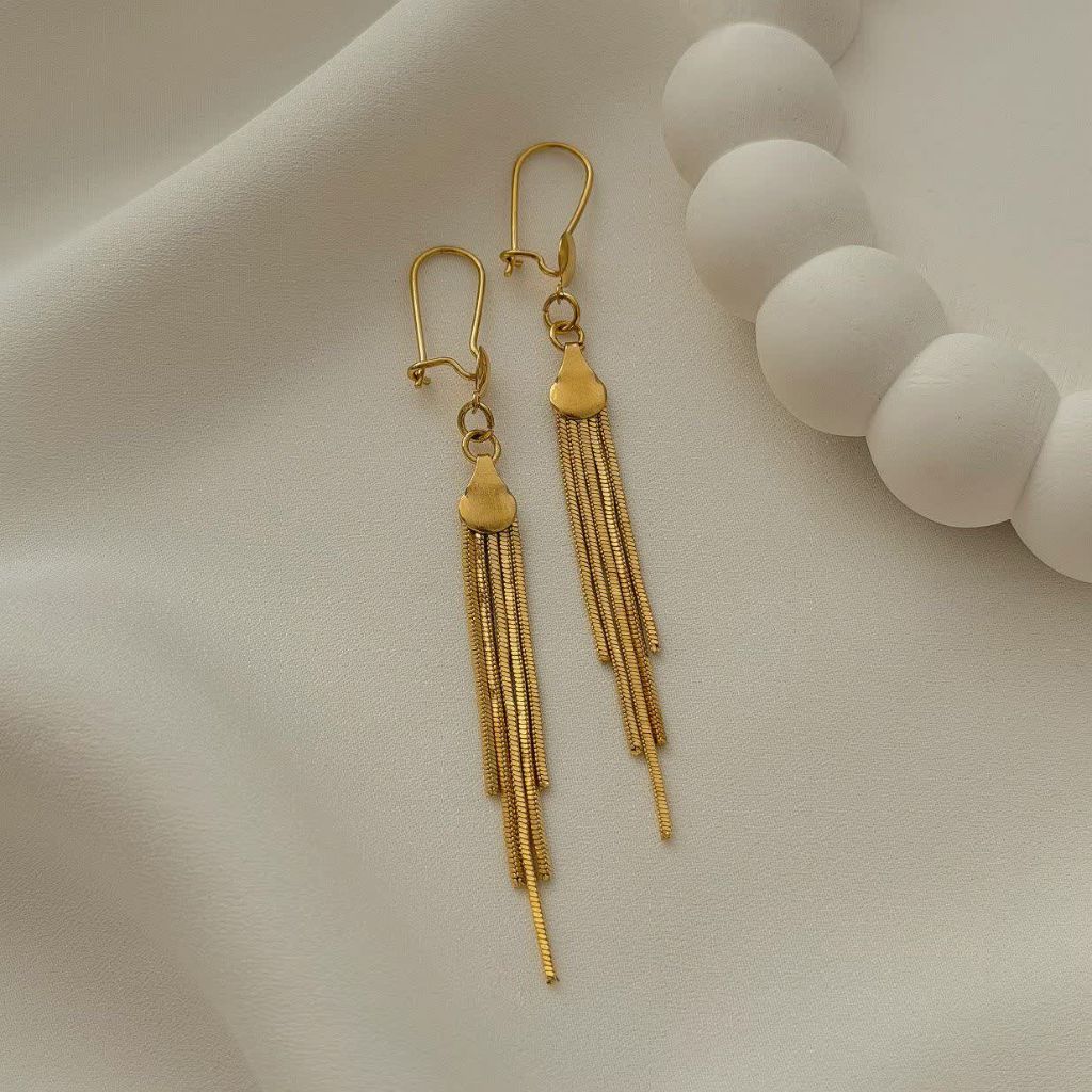 گوشواره آویز حلقه ای بلندباتنوع.کاملاطرح طلارنگ ثابت تضمینی. برندمعتبر شین