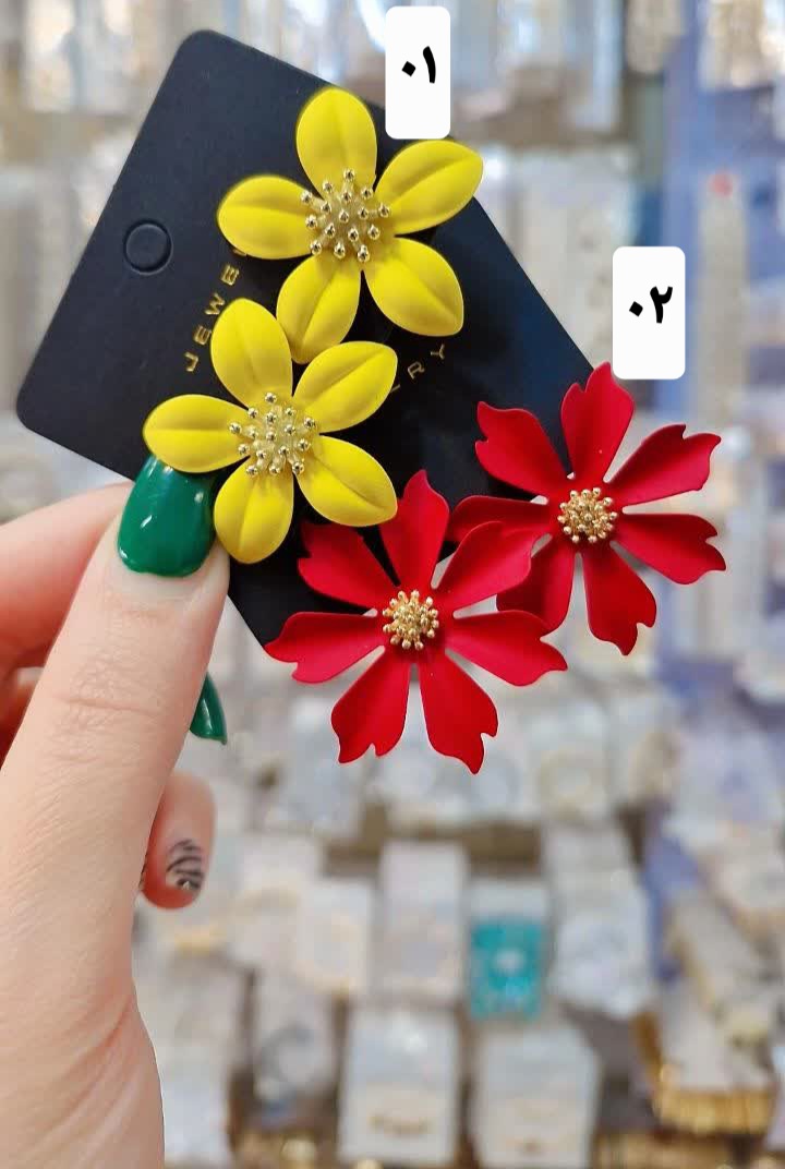گوشواره گل میناکاری ترندوخاص بهاری آبکاری میخ نقره.وارداتی باکیفیت بالا