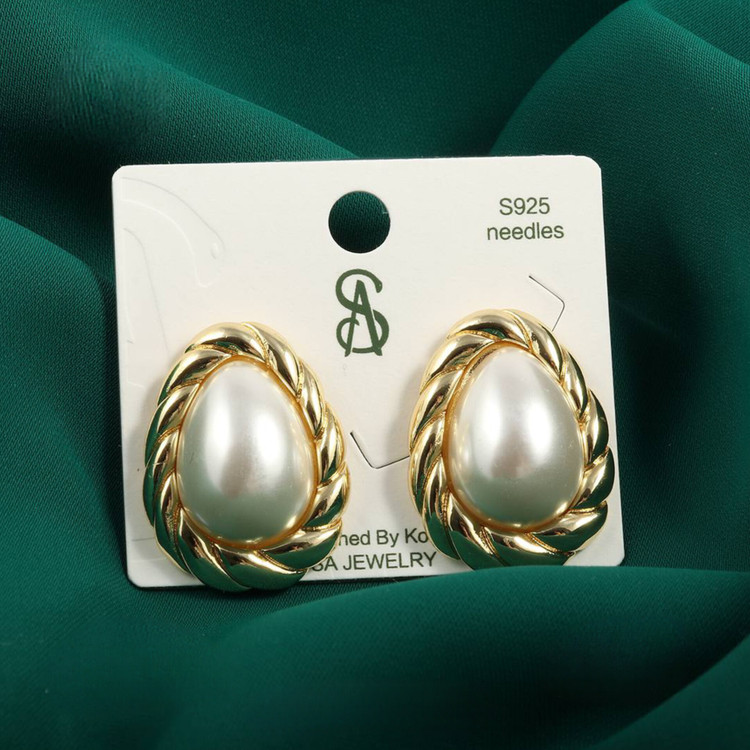 گوشواره میخی آبکاری نقره فشن جدید مرواریدی استیل رنگ ثابت