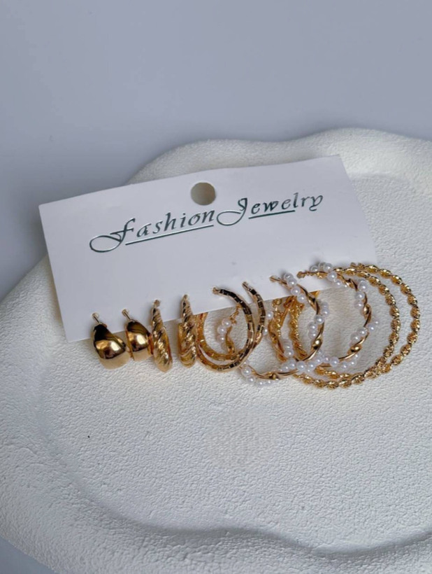 پک گوشواره طلایی دخترانه طرح حلقه ای کاربردی آبکاری رادیوم