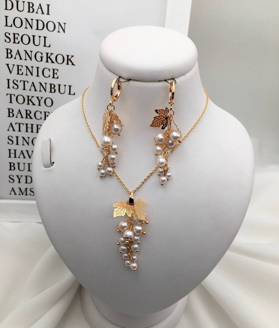 نیمست مرواریدی برند Ysx طرح انگور مشابه طلا پلاک زنجیر گوشواره