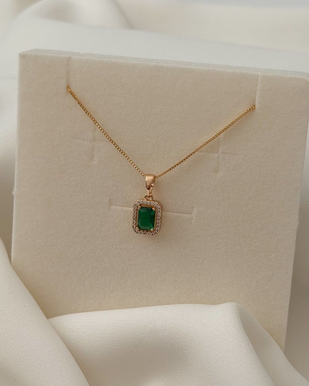 گردنبند ژوپینگ نگین سبز مخراجکاری آبکاری طلا ۱۸عیار