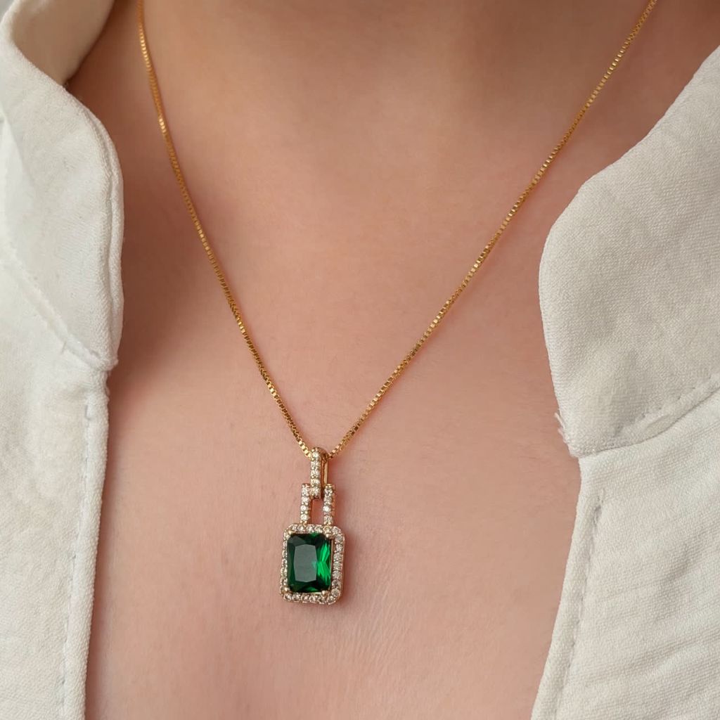 گردنبند ژوپینگ نگین سبز مخراج کاری آبکاری طلا ۱۸عیار