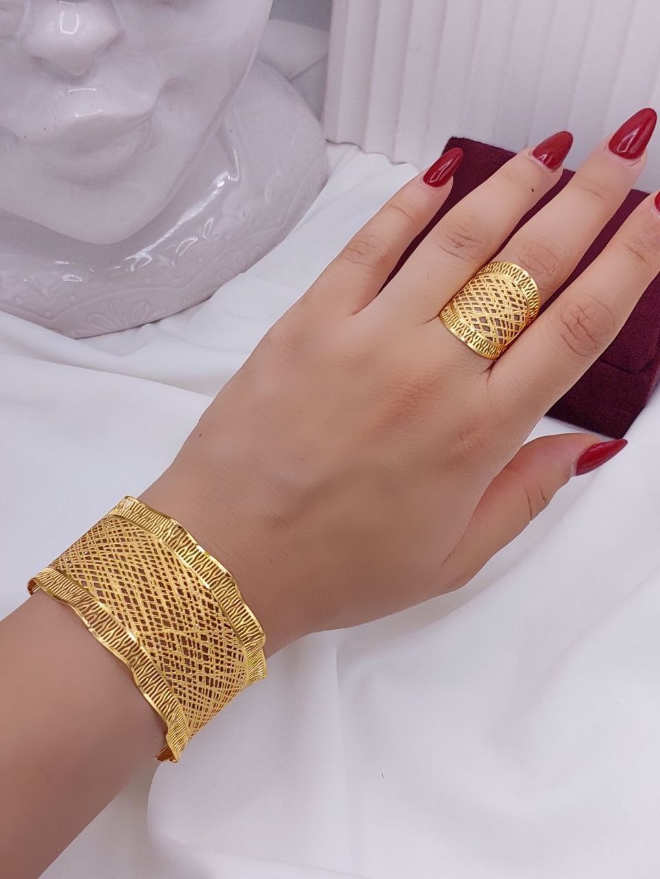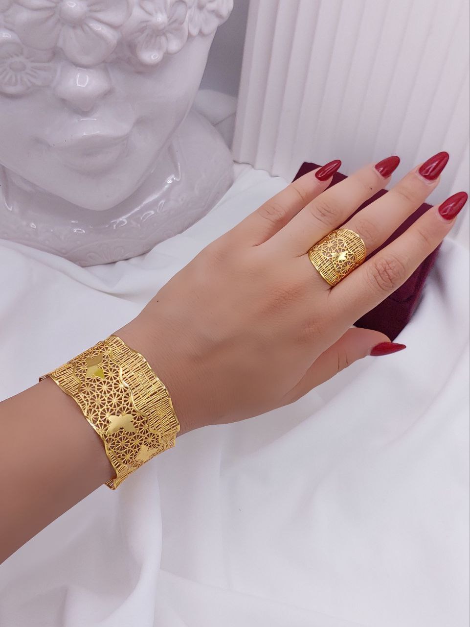 ست دستبند وانگشتربحرینی رنگ ثابت آبکاری طلا وارداتی