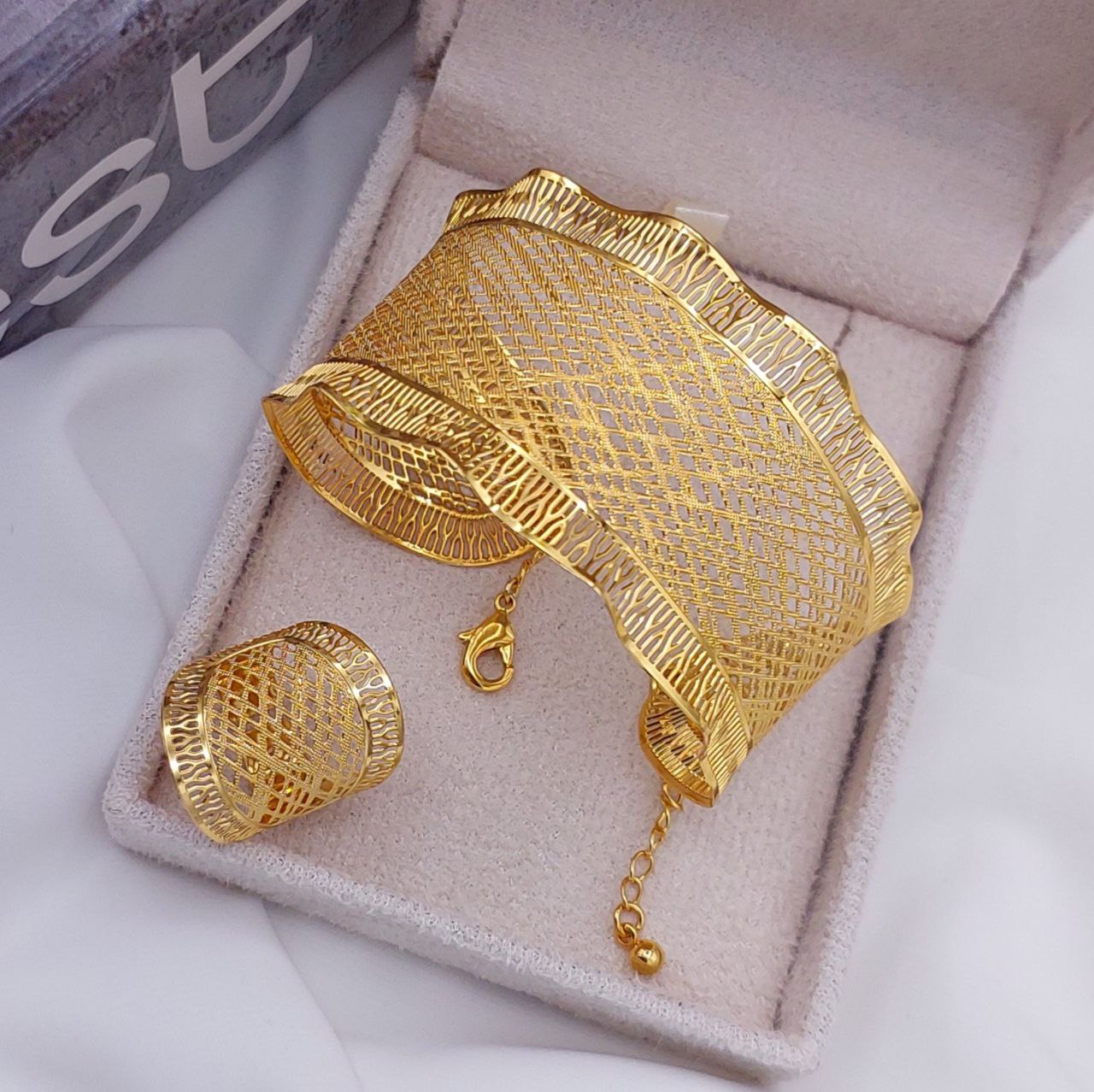 ست دستبندوانگشتر خلیجی رنگ ثابت با آبکاری طلا