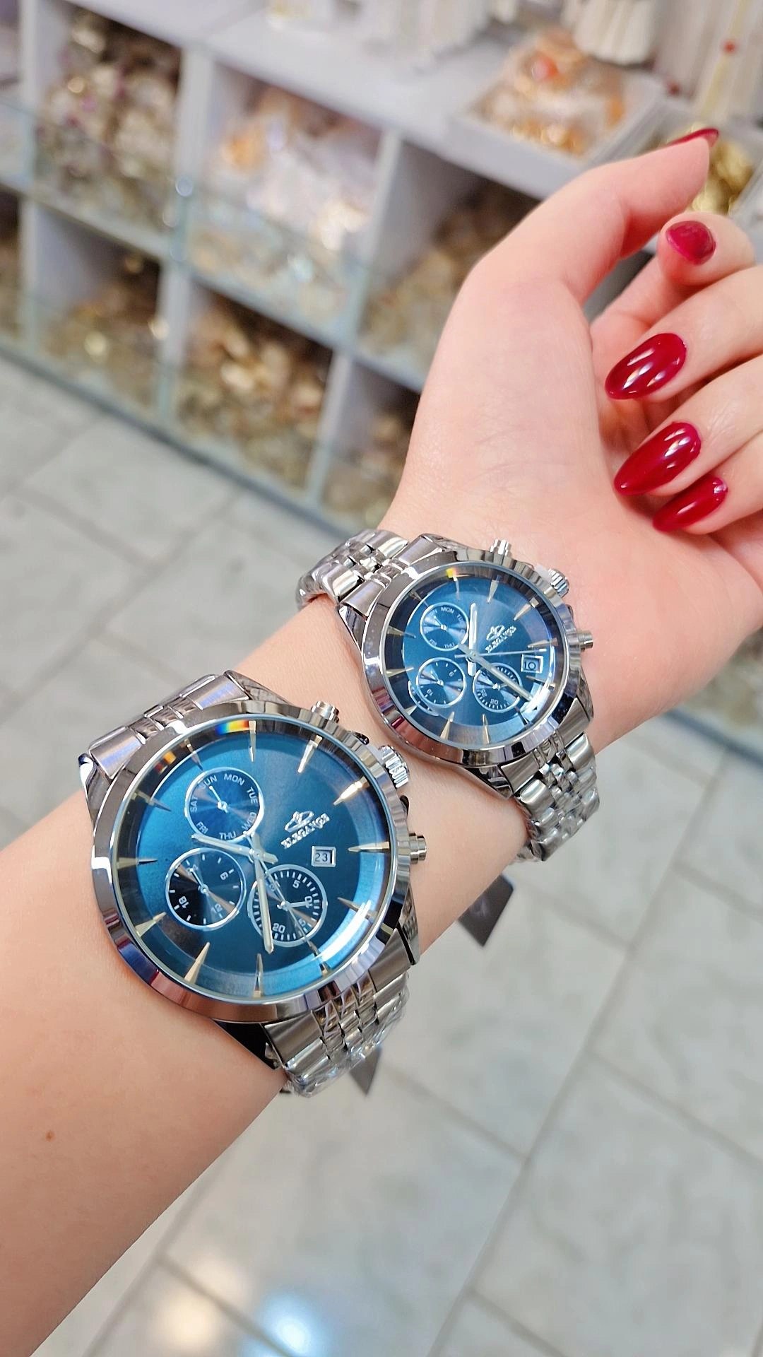 ست ساعت کاپلی سیلور صفحه آبی تقویمدار باکیفیت