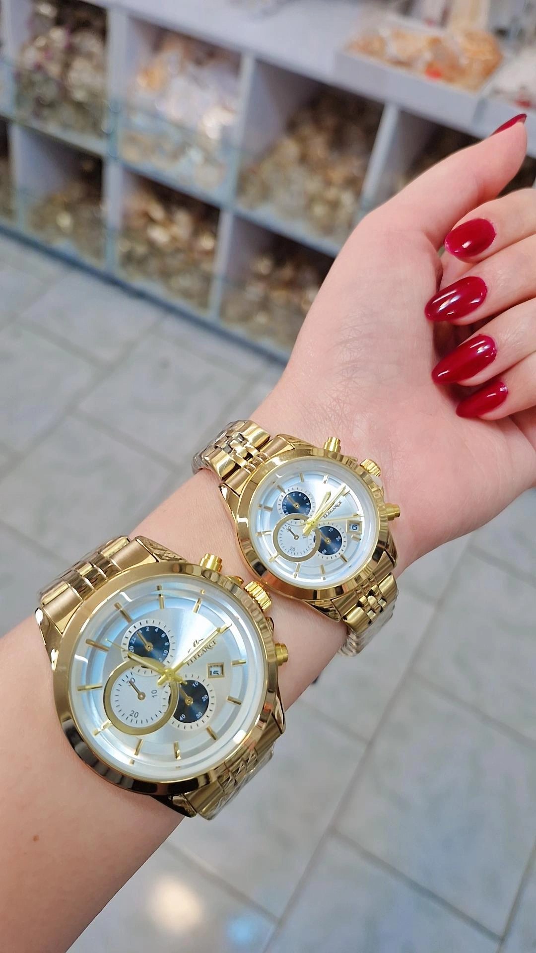 ست ساعت کاپلی طلایی صفحه سفید تقویمدار باکیفیت