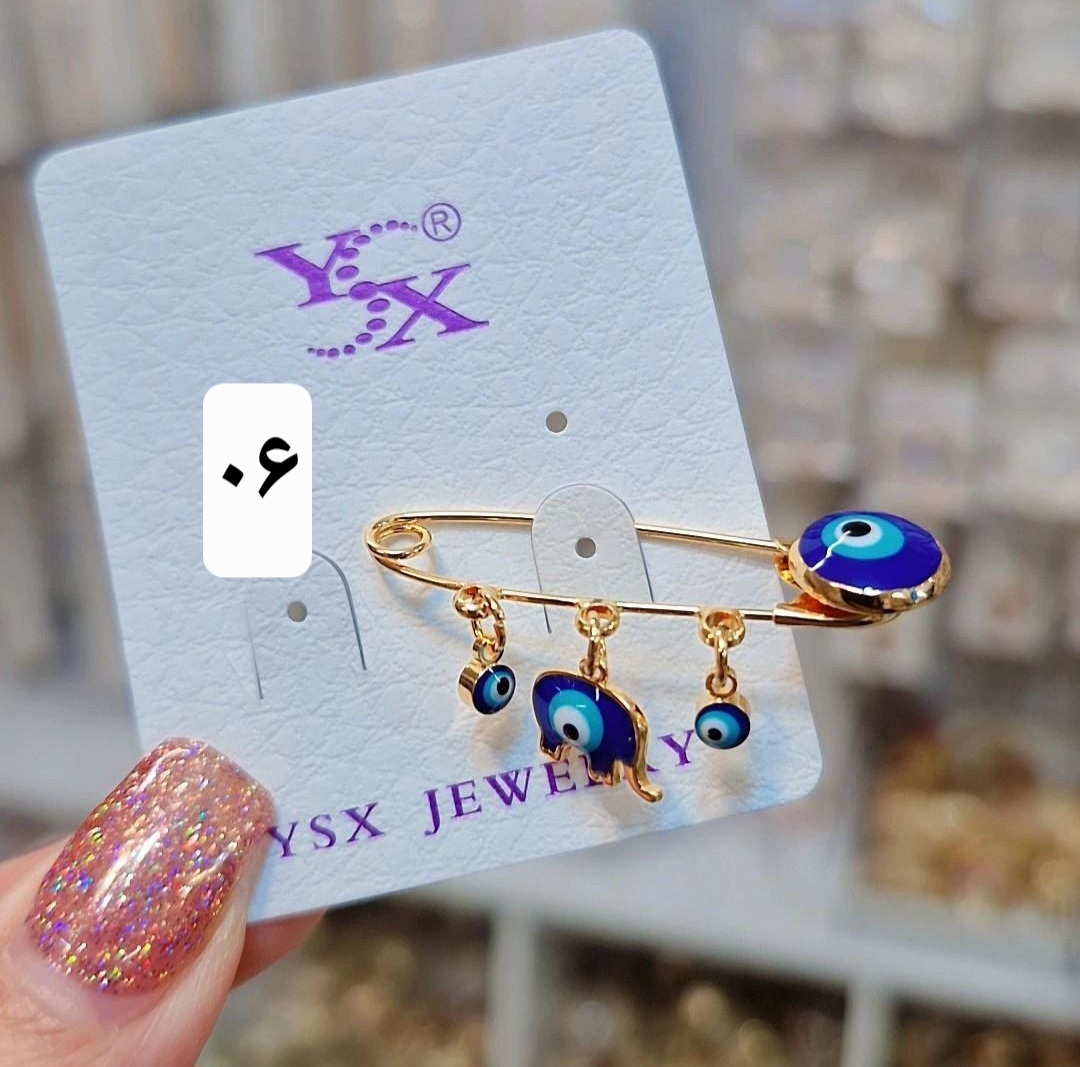 سنجاق سینه وسنجاق پستونک چشم نظر نوزاد جنس برنزی رنگ ثابت برندمعتبر Ysx باآبکاری طلا۱۸عیار