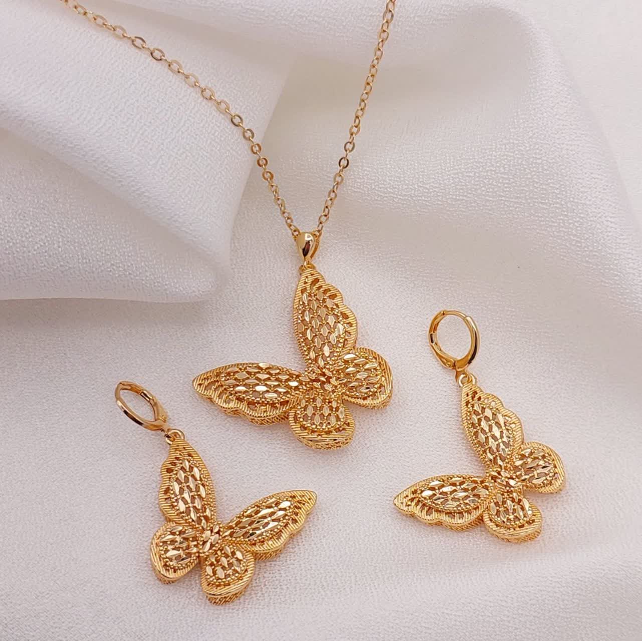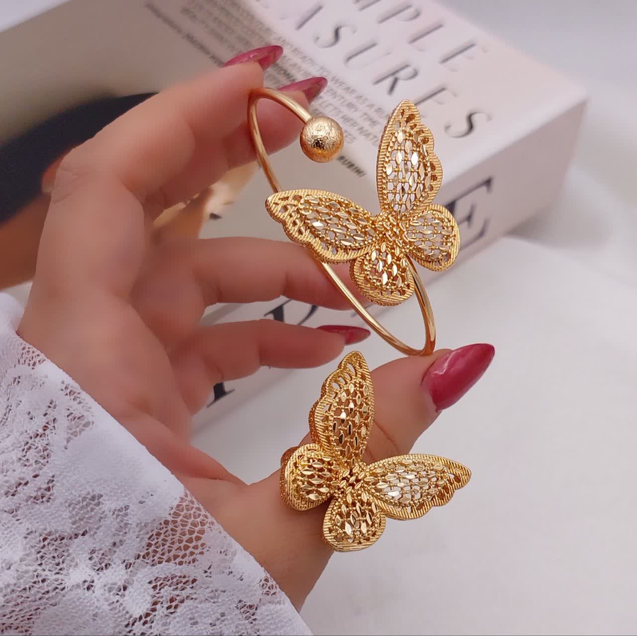 ست دستبند بنگل و انگشتر پروانه ای طلایی طرح طلا،آبکاری