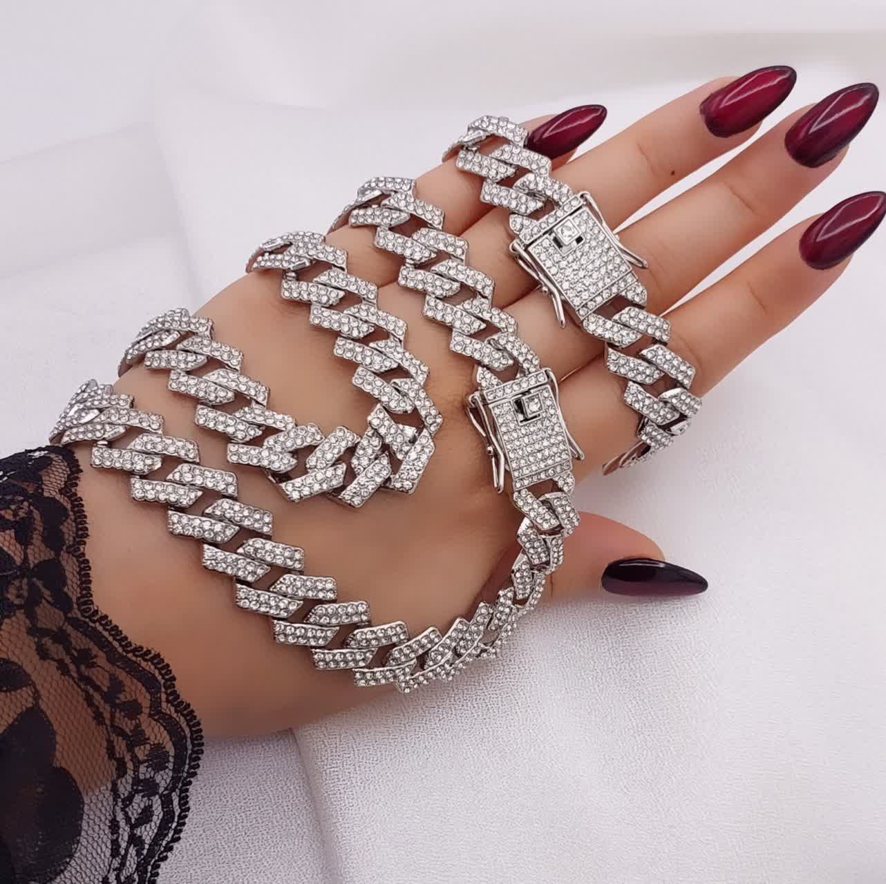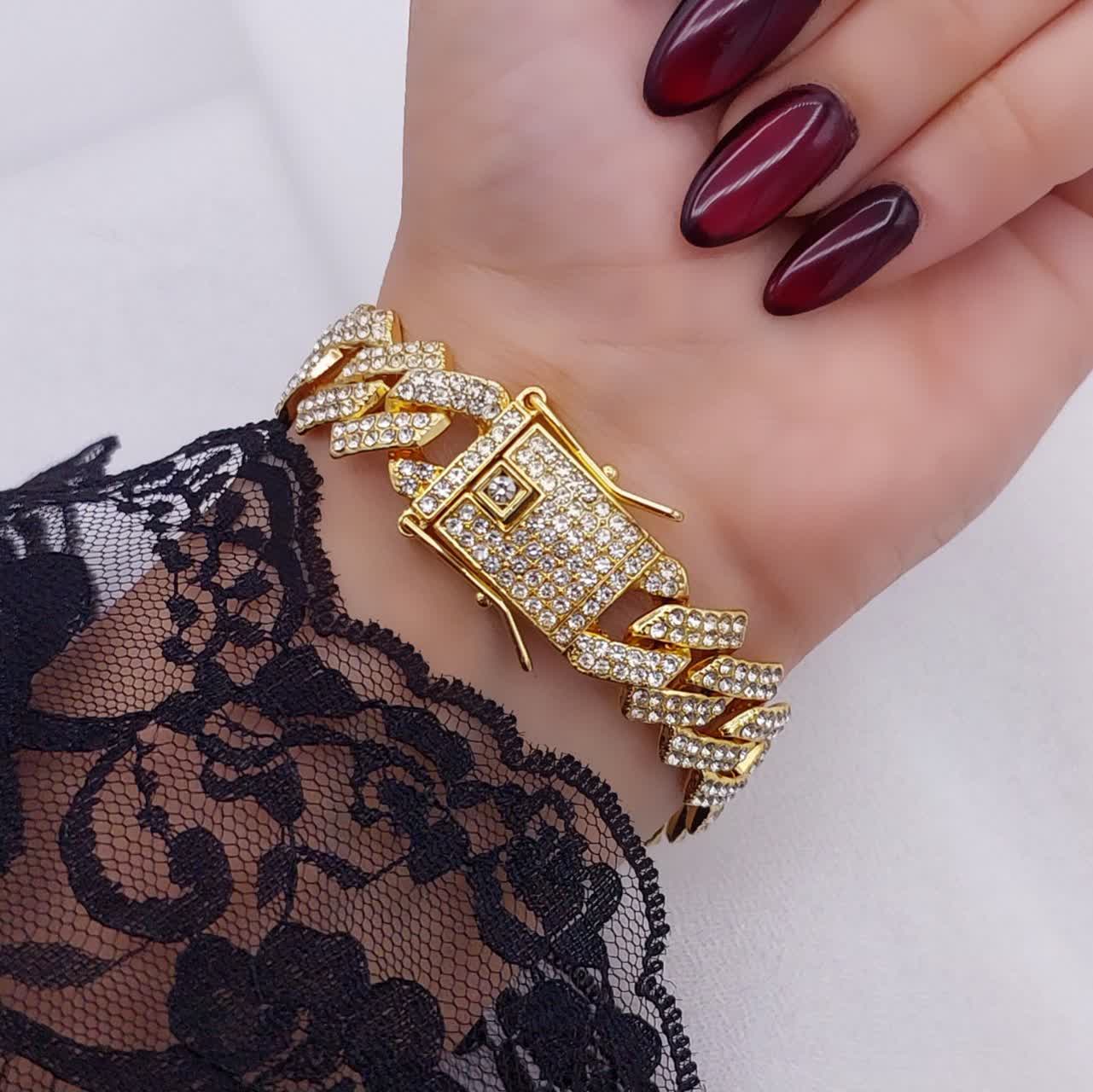 ست دستبند وگردنبندمردانه زنانه لوکس جواهری برندمعتبر my dear فول نگین،قفل کوبایی ،بهترین کیفیت