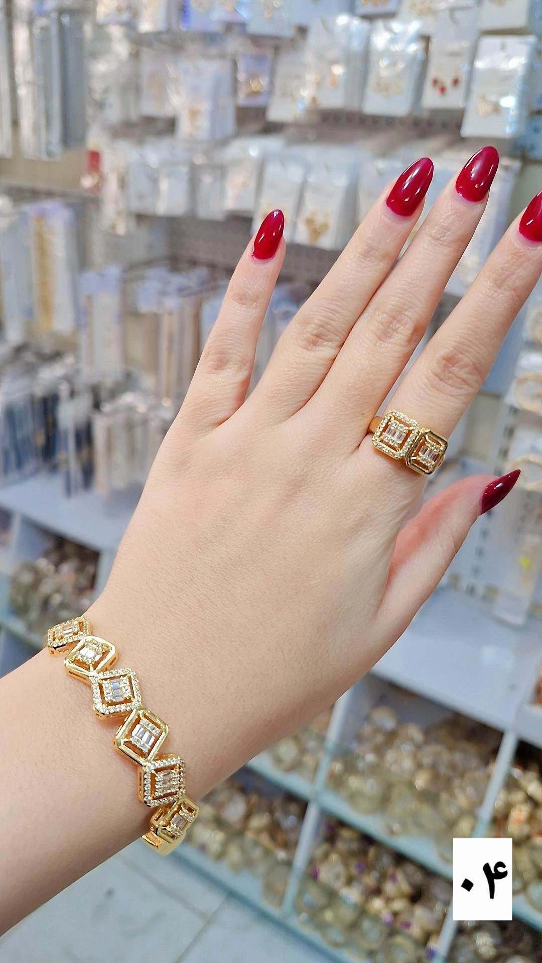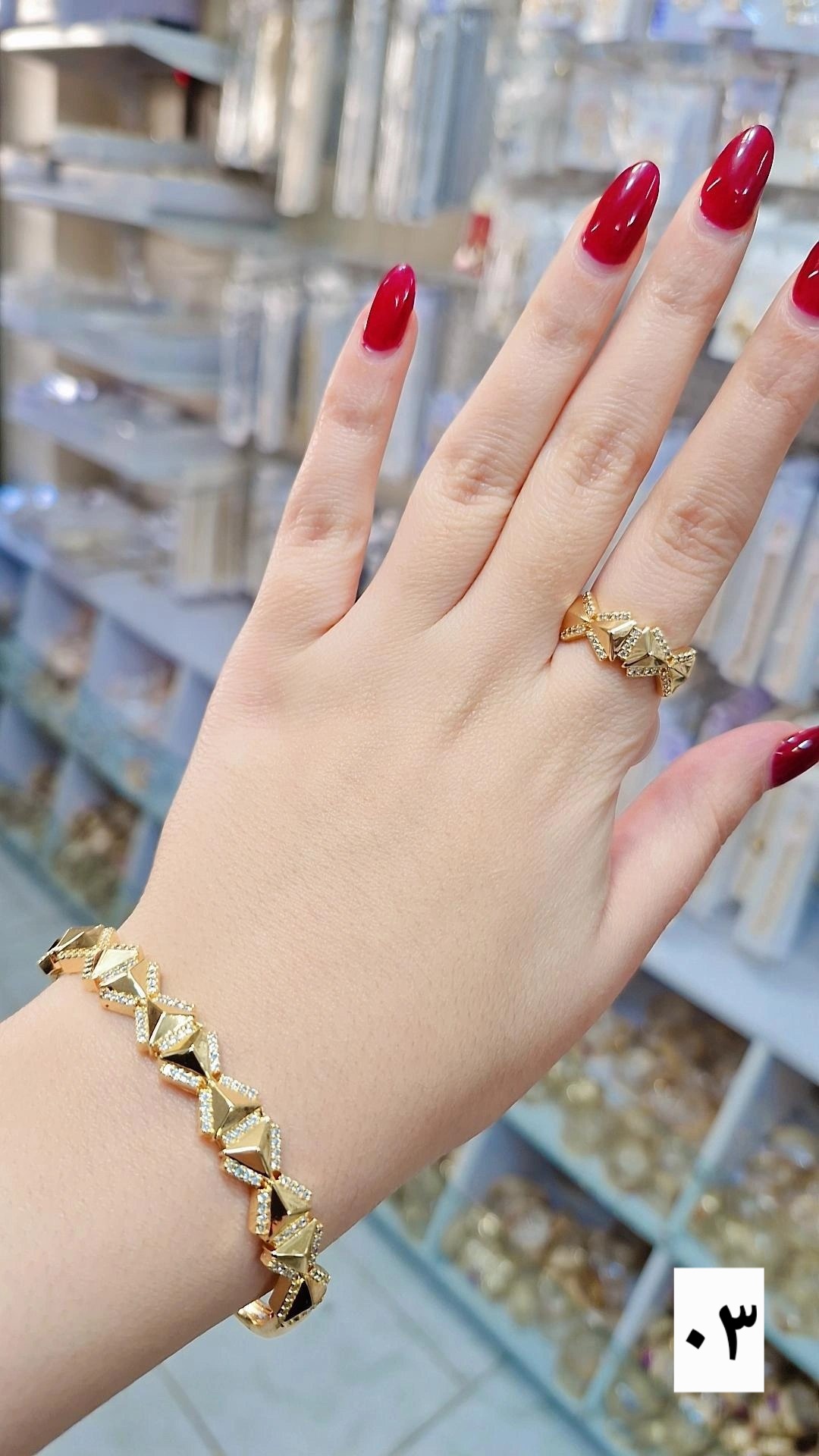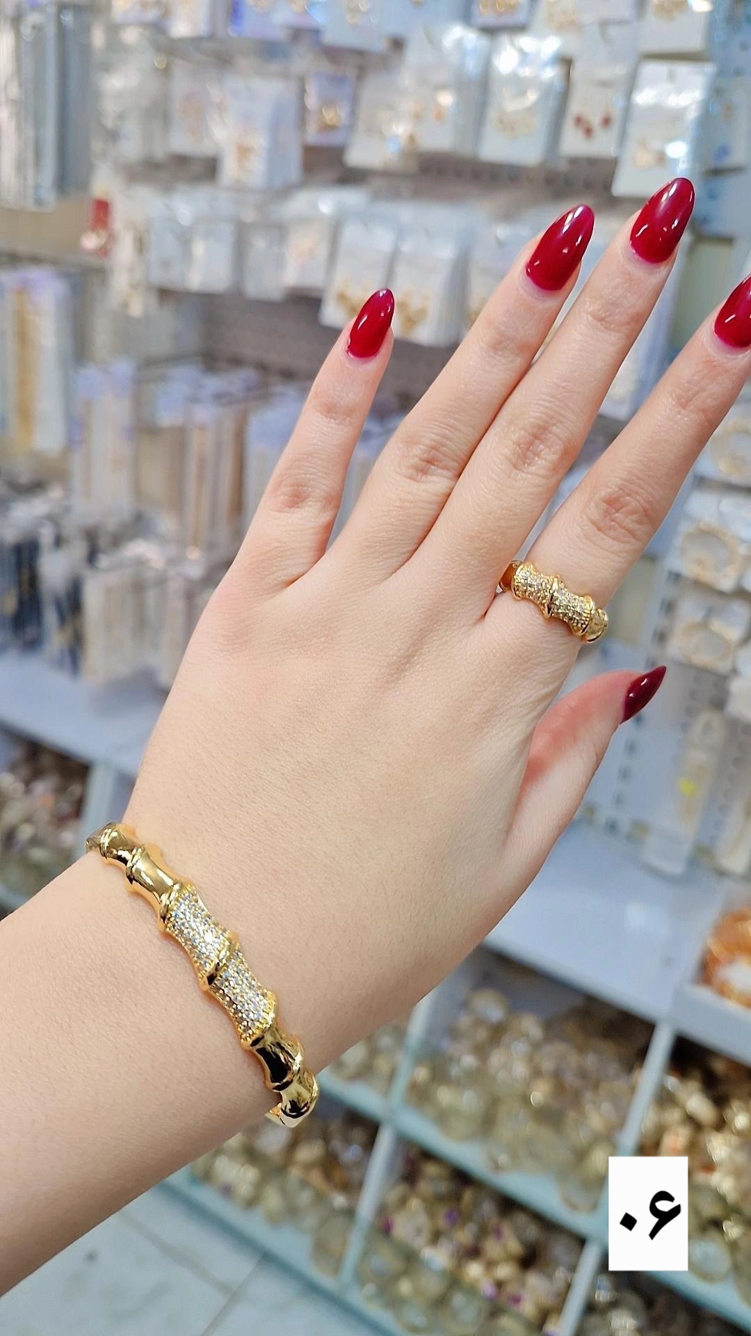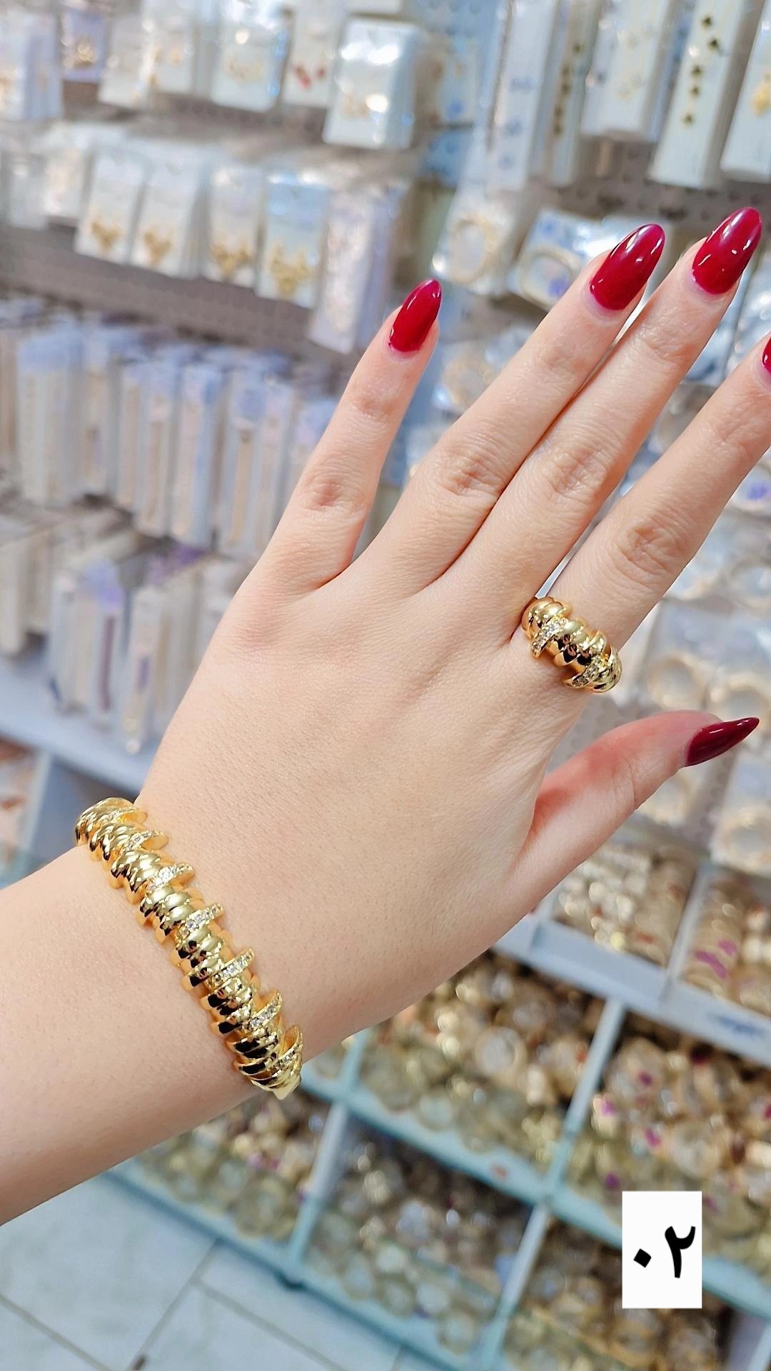 ست دستبندانگشترجواهری طرح استخوانی جدید،کاملامشابه طلا،وارداتی رنگ ثابت در ۶طرح متنوع