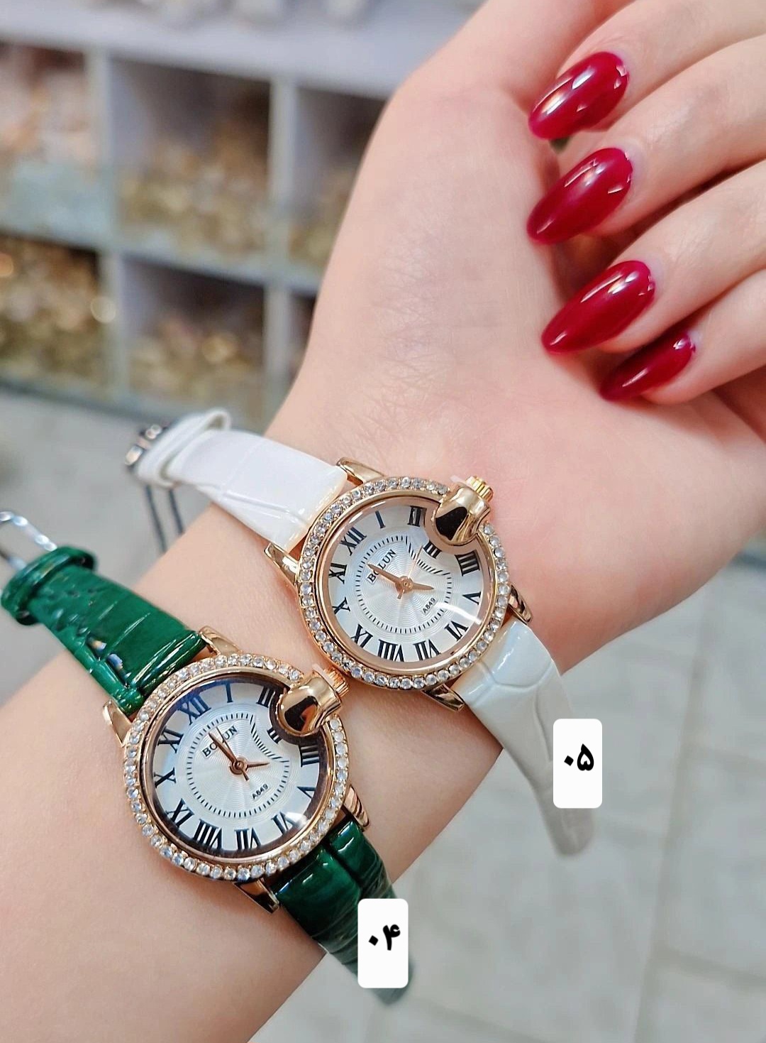 ساعت زنانه بندچرم براق نگینکاری طرح جدید وشیک.برند بالون