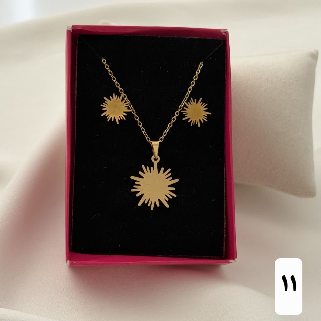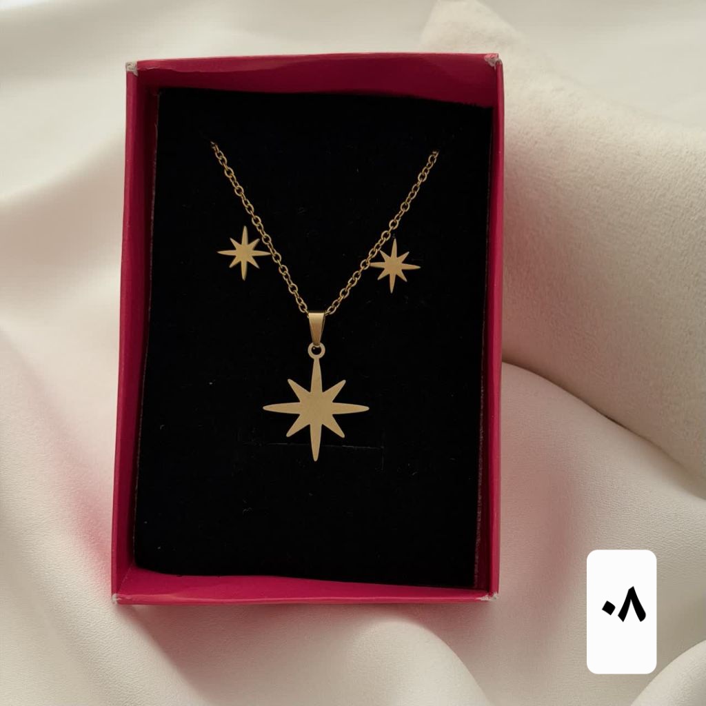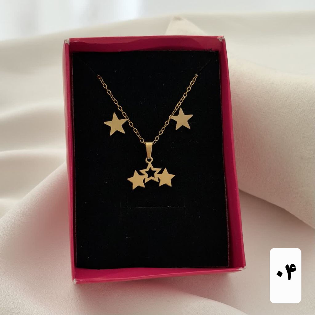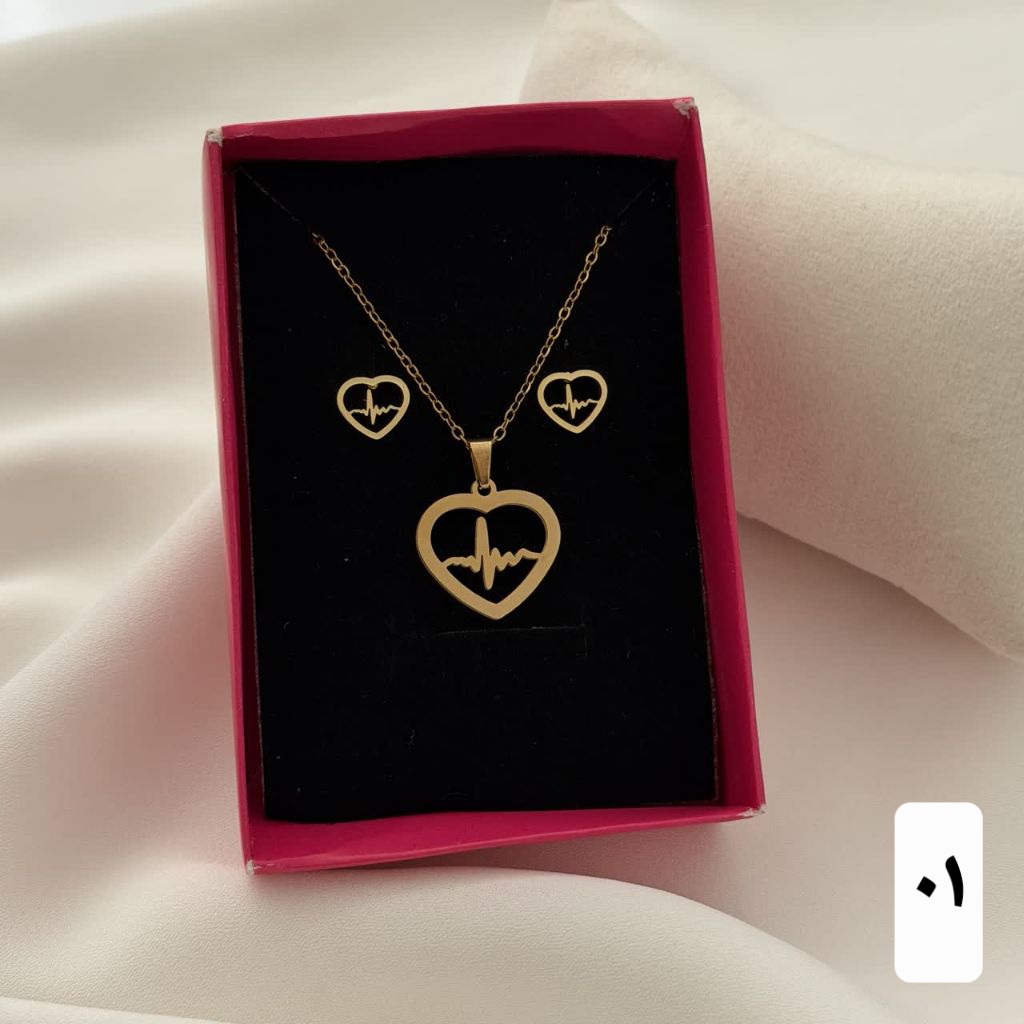 نیمست مینیمال دخترانه طرح طلا استیل رنگ ثابت مناسب هدیه تولد عیدی دیت عاشقانه ویژگی های محصول جنس:استیل ارتفاع پلاک:2 سانت ارتفاع گوشواره:7 میل نوع گوشواره:میخی طول زنجیر:43 سانت