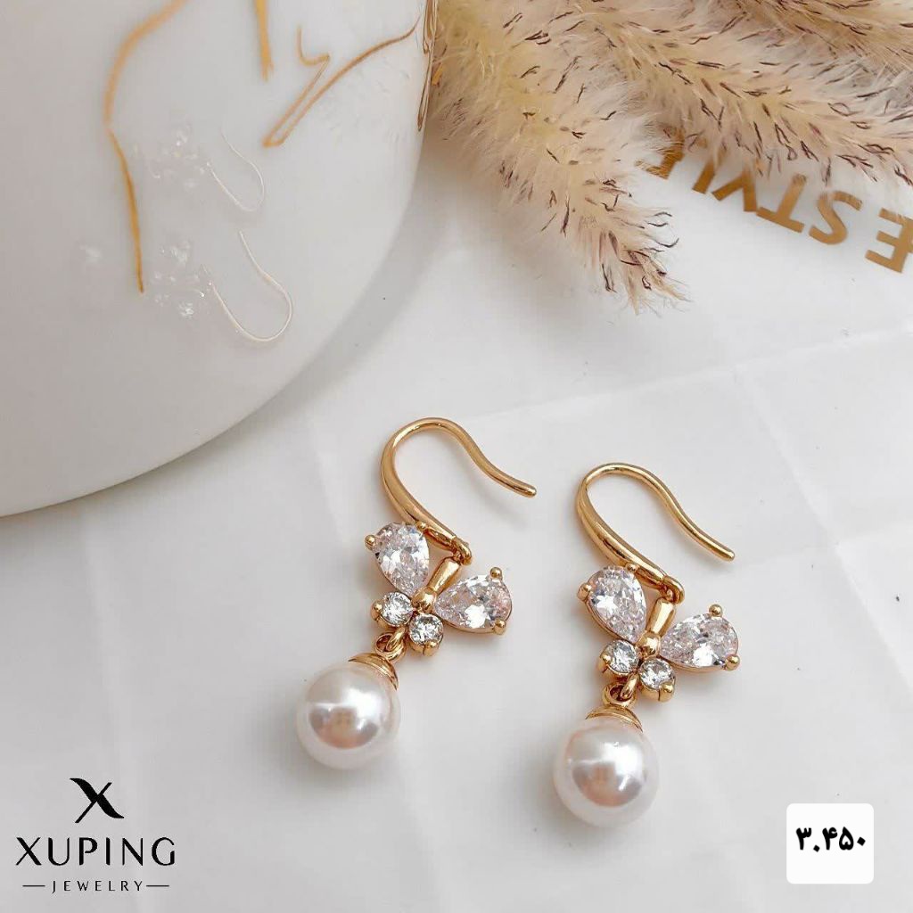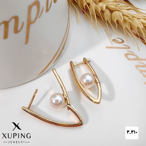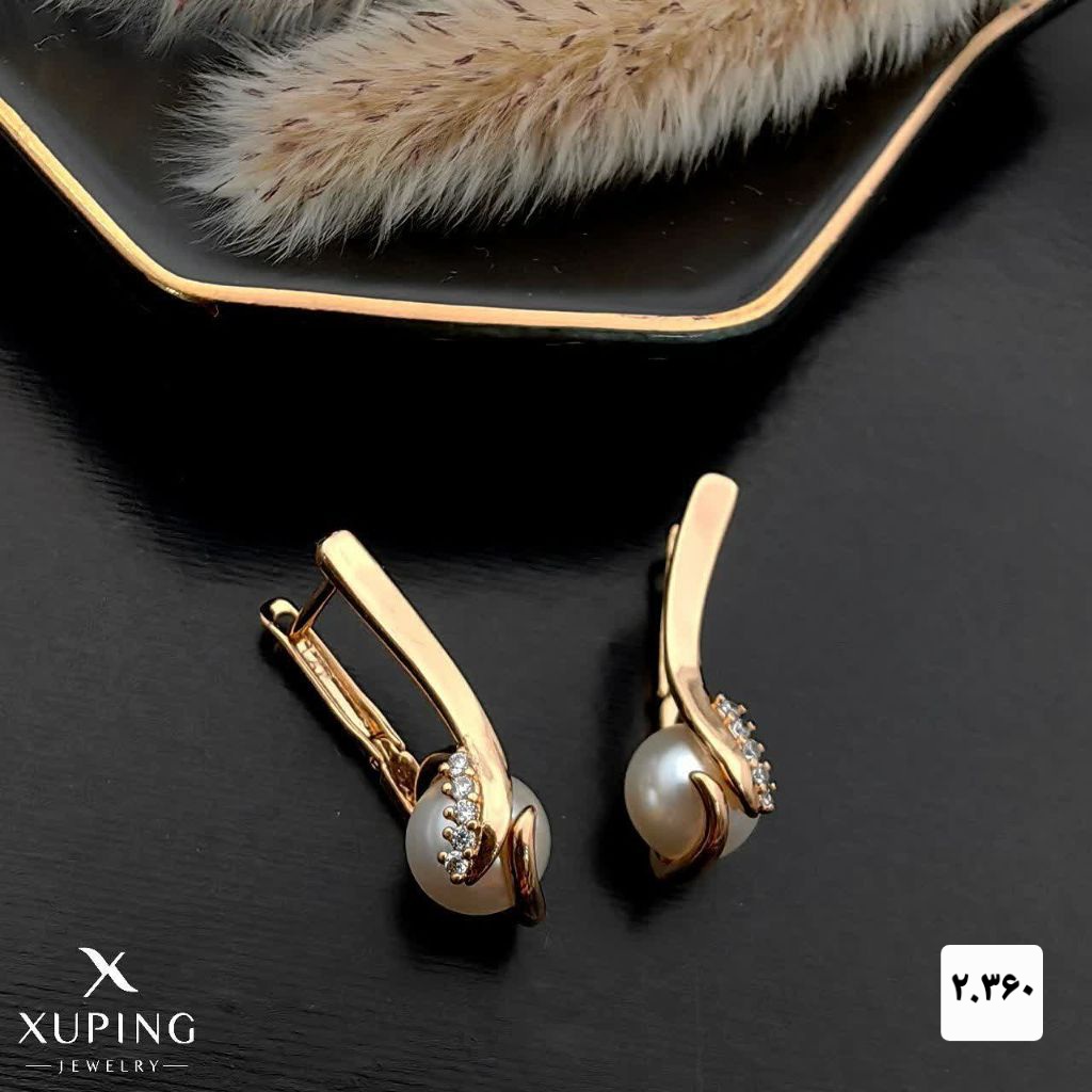 گوشواره مرواریدی خاص وجدید ژوپینگ کاملا مشابه طلا،رنگ ثابت وضدحساسیت آبکاری طلا۱۸عیار
