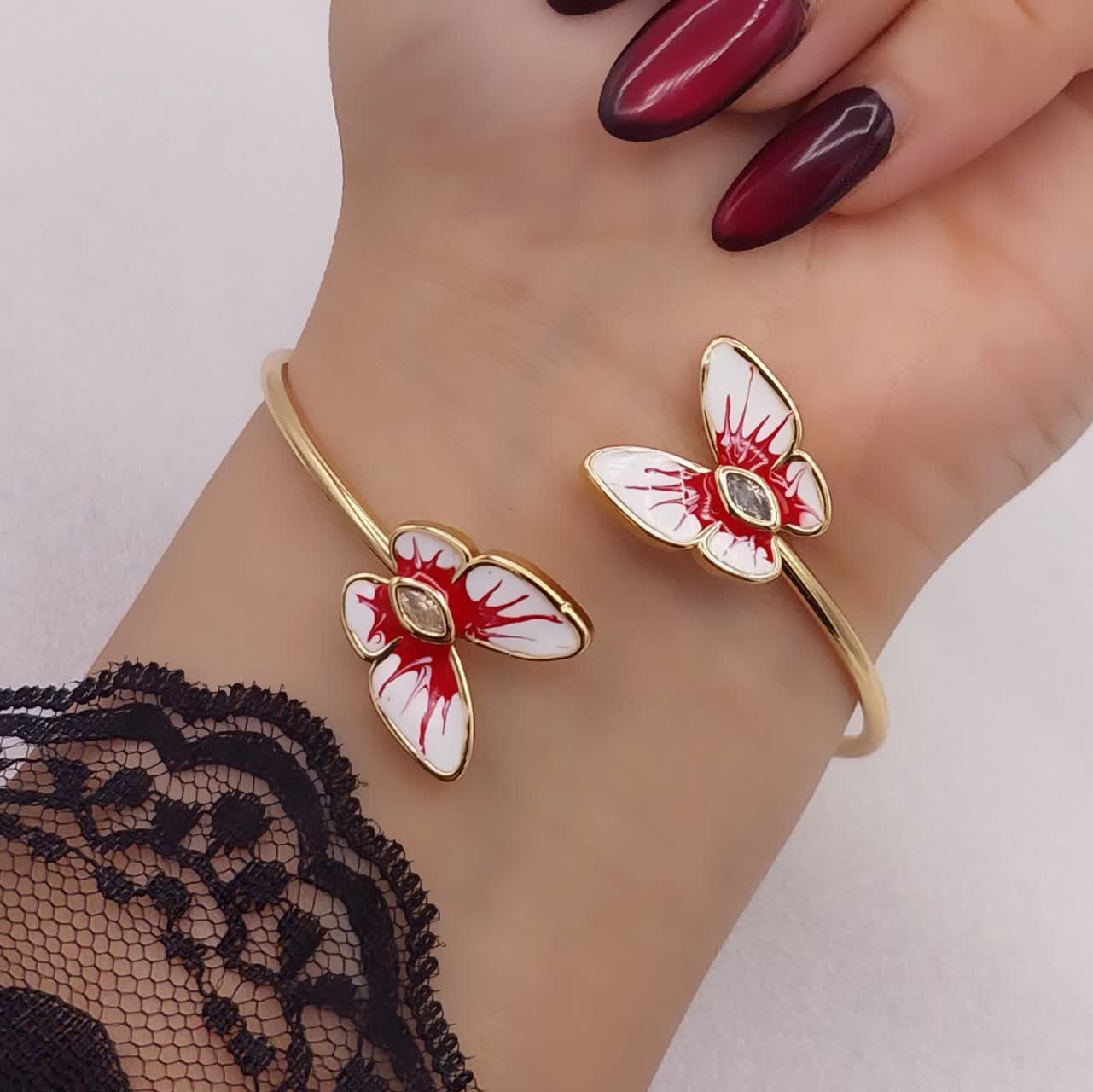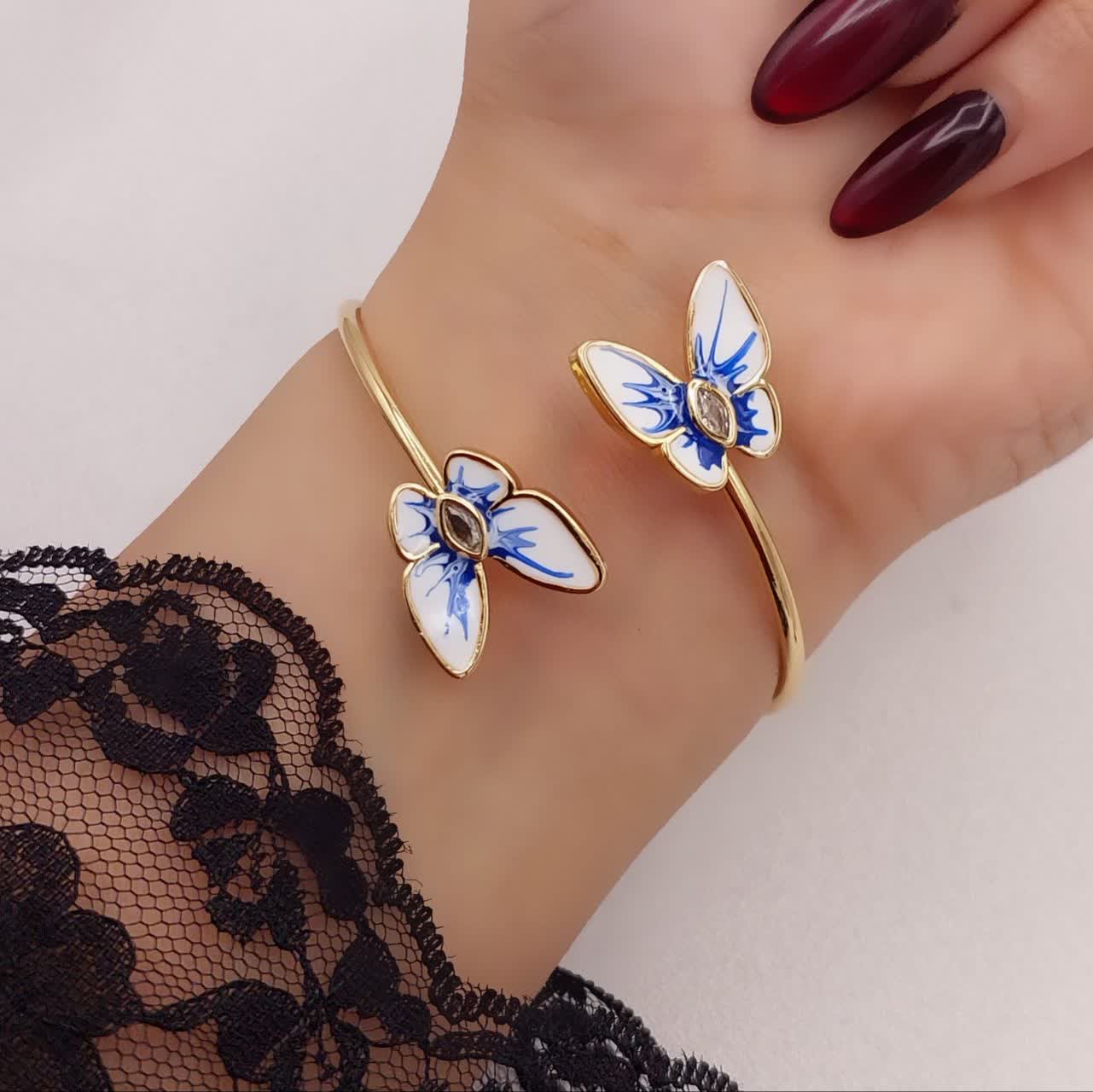 دستبند بنگل میناکاری پروانه طرح جدید آبکاری طلا