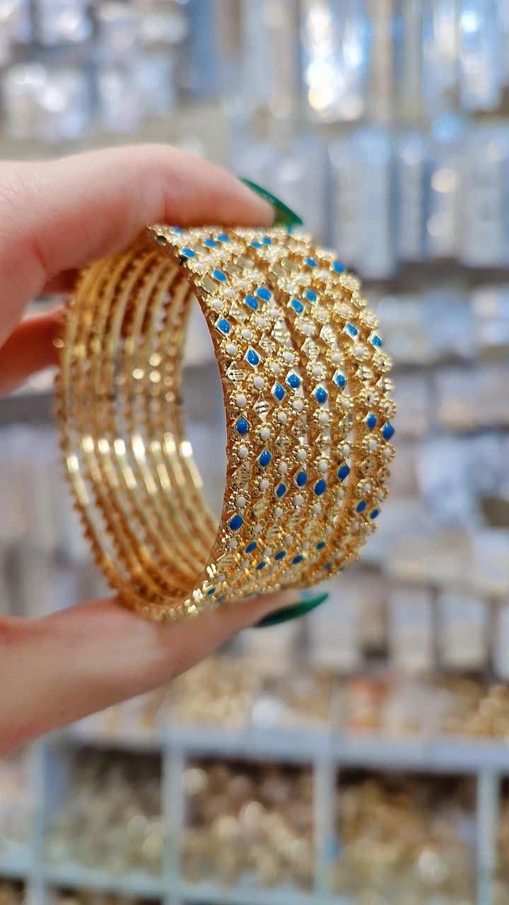 النگو خلیجی نگیندار میناکاری جدید کاملا طرح طلا برنز آبکاری قوی طلا