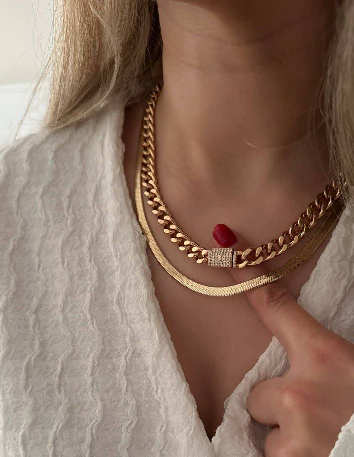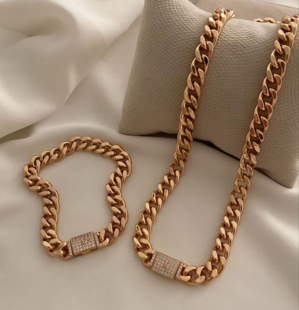 نیمست کارتیه رنگ ثابت گردنبنددستبند قفل کوبایی طرح خاص طلا،مردانه زنانه ژوپینگ