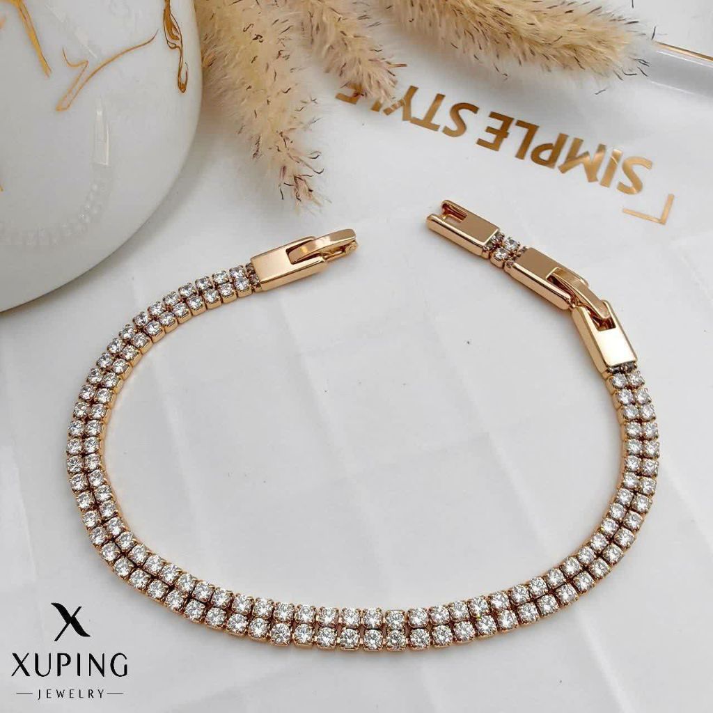 دستبند جواهری فول نگین جدید طلایی ژوپینگ.رنگ ثابت آبکاری طلا۱۸