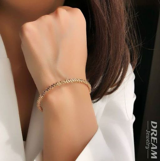 دستبند بنگل خاویاری کپی طلا،رنگثابت آبکاری طلا۱۸عیار برندمعتبر دریم