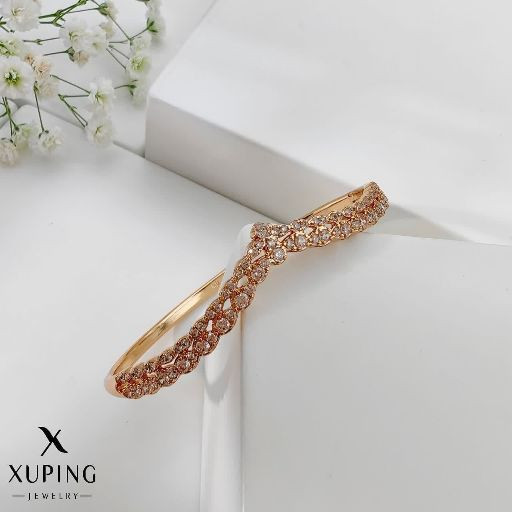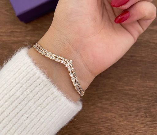 دستبندجواهری لوکس زنانه جدیدطرح طلاژوپینگ رنگ‌ثابت آبکاری طلا۱۸عیار