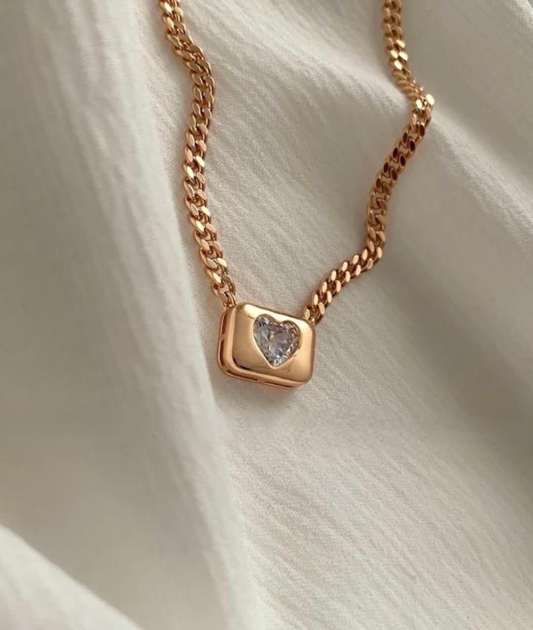 گردنبند مینیمال قلبی خاص ژوپینگ طرح طلا رنگ ثابت وضدحساسیت آبکاری