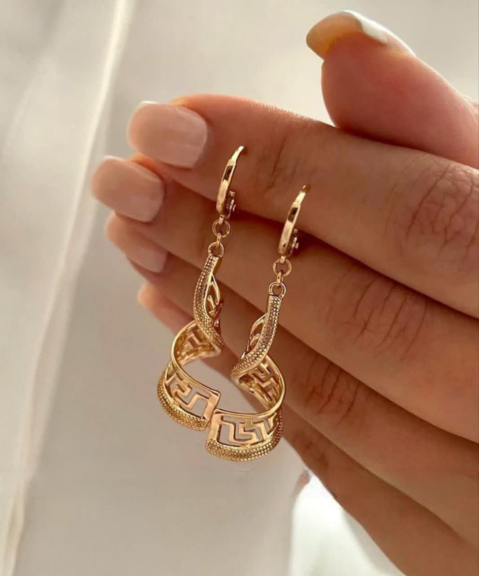 گوشواره ورساچ شیک طلایی ژوپینگ کپی طلا رنگثابت آبکاری طلا۱۸عیار